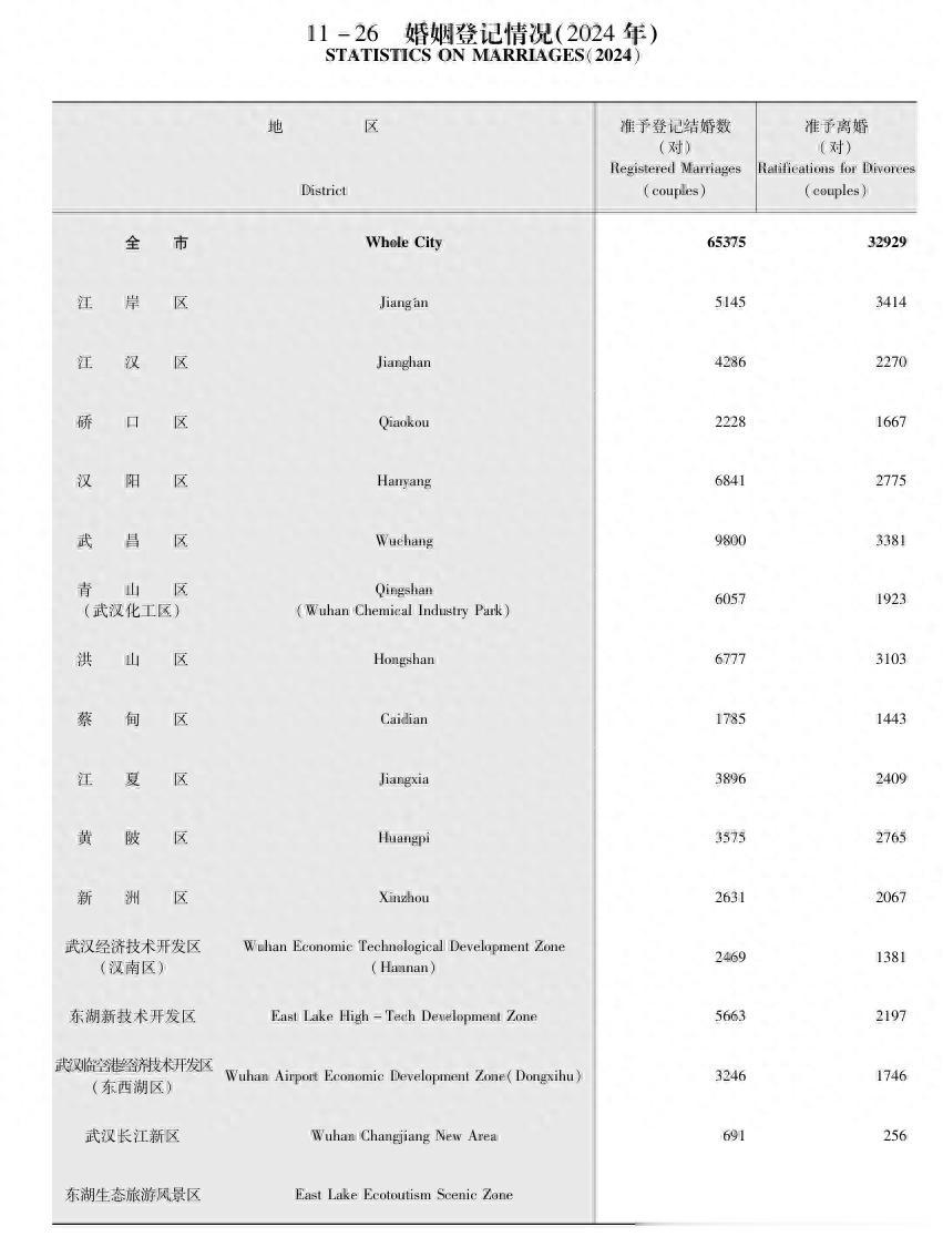 与城区对比的潜在差异通常城区离结比也较高,但郊区可能因社会支持系统(如婚恋咨询、家庭调解)相对薄弱,法律意识或离婚手续便捷性等因素,导致离婚更为“干脆”。这些数据说明武汉市郊区正经历婚姻关系的高变动期,背后是城镇化、经济压力、人口流动及观念变迁共同作用的结果。