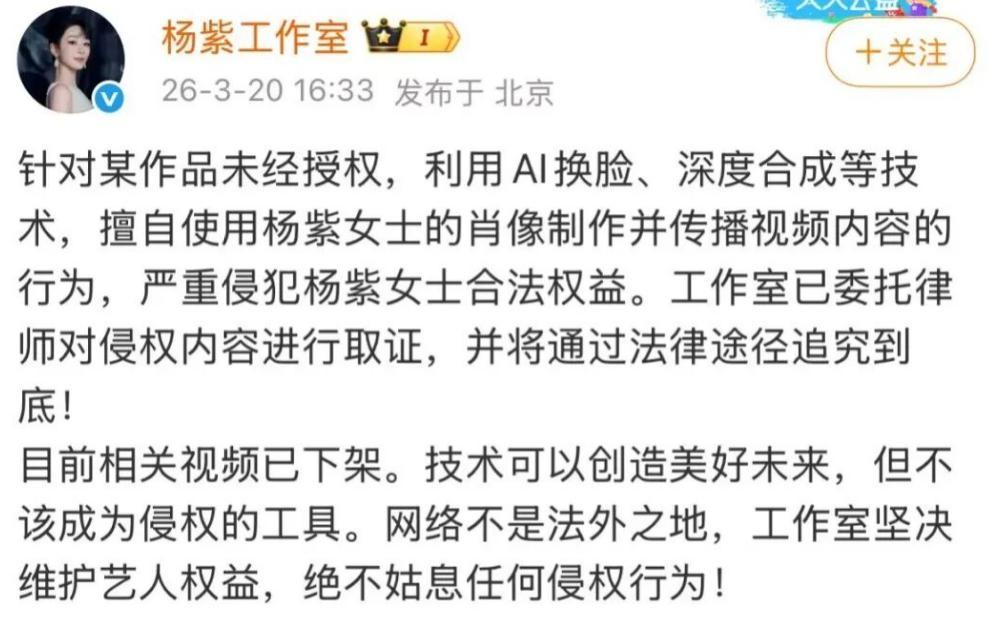 面对这些情况,杨紫还有任嘉伦,易烊千玺等多位演员,通过工作室发声明集体维权。