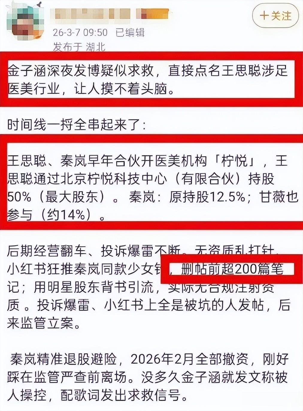 #秦岚工作室回应和金子涵关系##秦岚方称不认识金子涵#微博.[2026-04-09].
