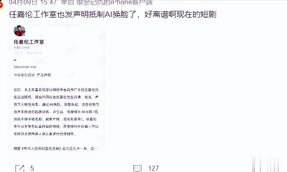 联手发声最近娱乐圈传来噩耗,有一大批明星集体站出来发声,一起抵制非法换脸,也一起反对用科技代替真人演员的情况,