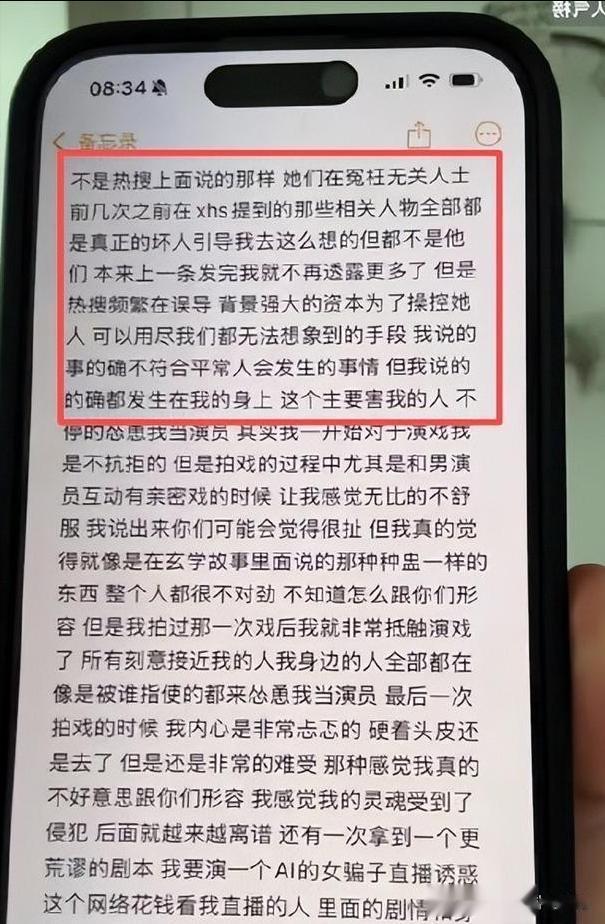 用备忘录的形式告诉大家她经历的一切,在二三年左右,她被人忽悠了,那人说有一种针可以祛痘消炎,