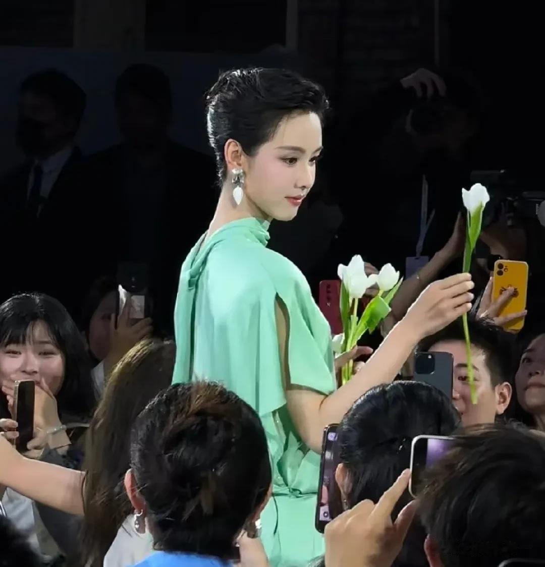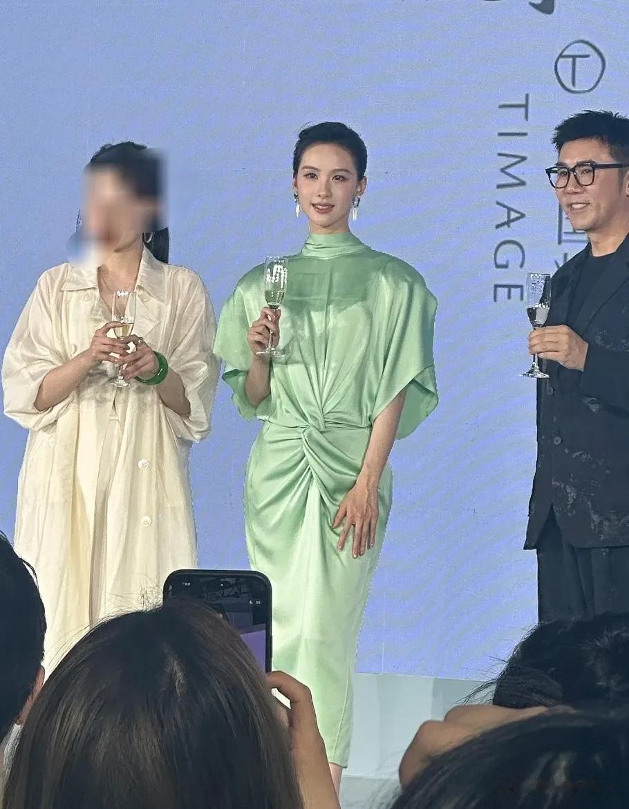 妈呀,这是真仙女啊!32岁陈都灵品牌线下活动,一袭薄荷绿长裙搭配水滴形耳坠,全盘高颅顶盘发,民国高贵温婉的大小姐不过如此了。