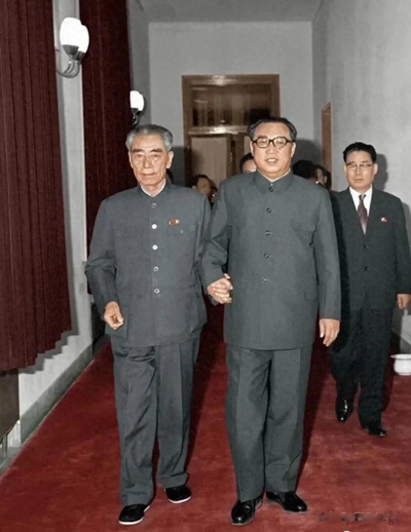 临别时,金日成紧紧握着周恩来总理的手,祝愿他早日康复。许多人都感觉到,这可能是两位革命战友的最后一面了。后来有朝鲜同志透露,金日成在得知周恩来去世后,曾多次落泪。