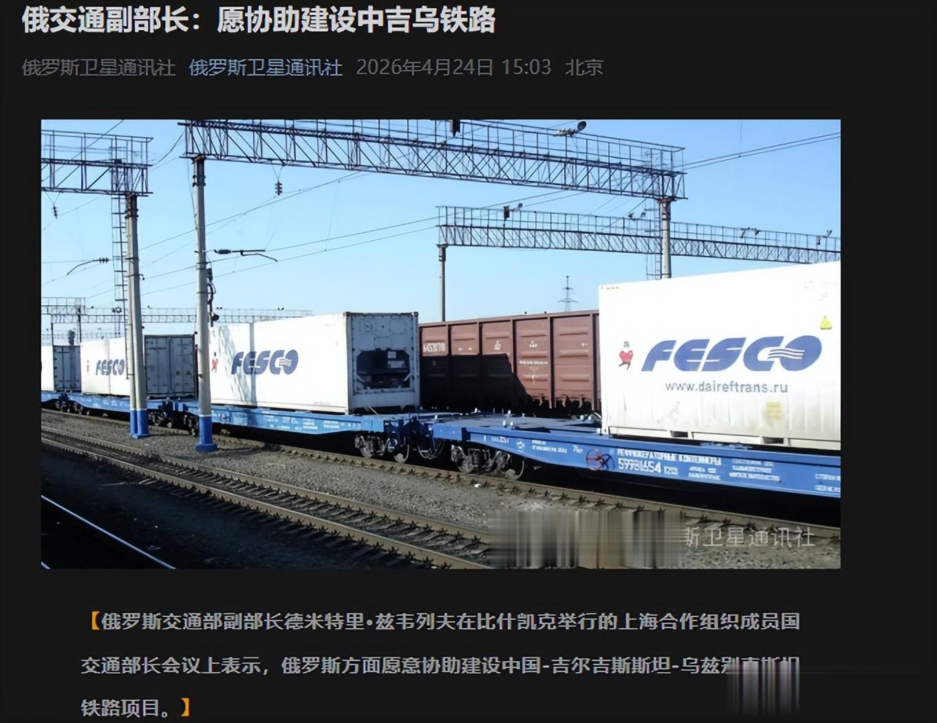 2026 年 4 月 23 日,在吉尔吉斯斯坦首都比什凯克举行的上合组织交通部长会议上,俄罗斯交通部副部长兹韦列夫公开表态,俄方愿意协助推动这条铁路建设,提供技术支持、人才培养及列车供应。这个信号的分量不小,因为过去这些年,真正卡住项目的关键力量之一,恰恰就是俄罗斯本身。