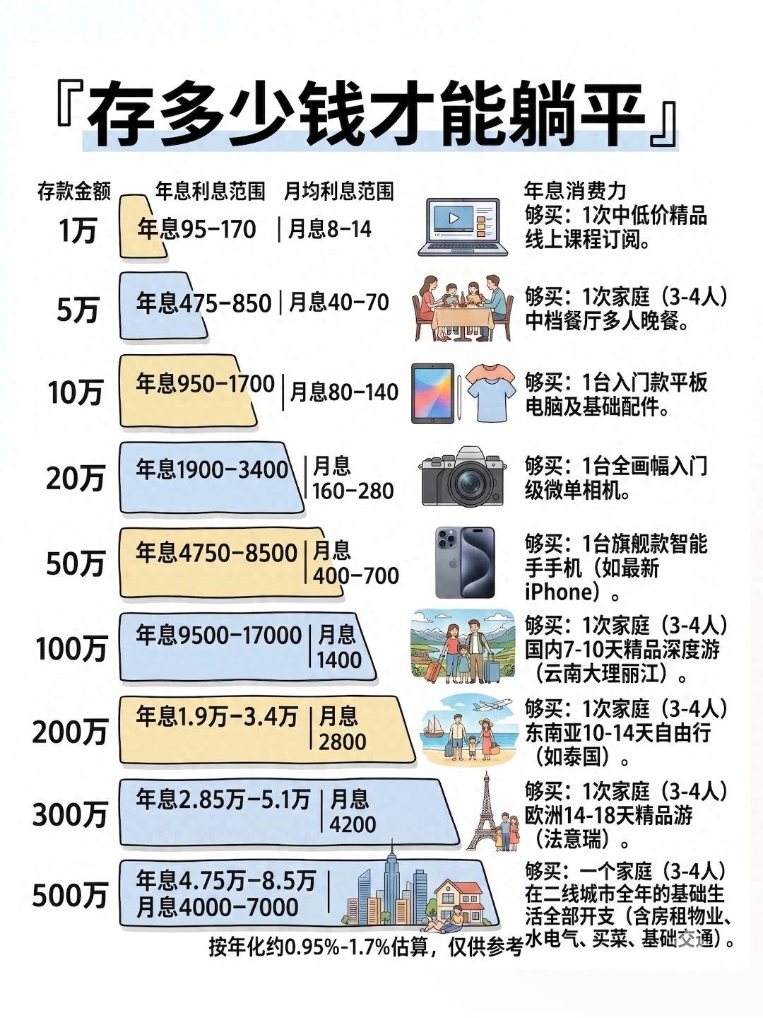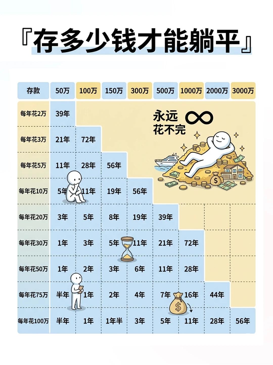 最近总刷到“存XX万躺平”的帖子。我看了张真实测算表,瞬间清醒。
