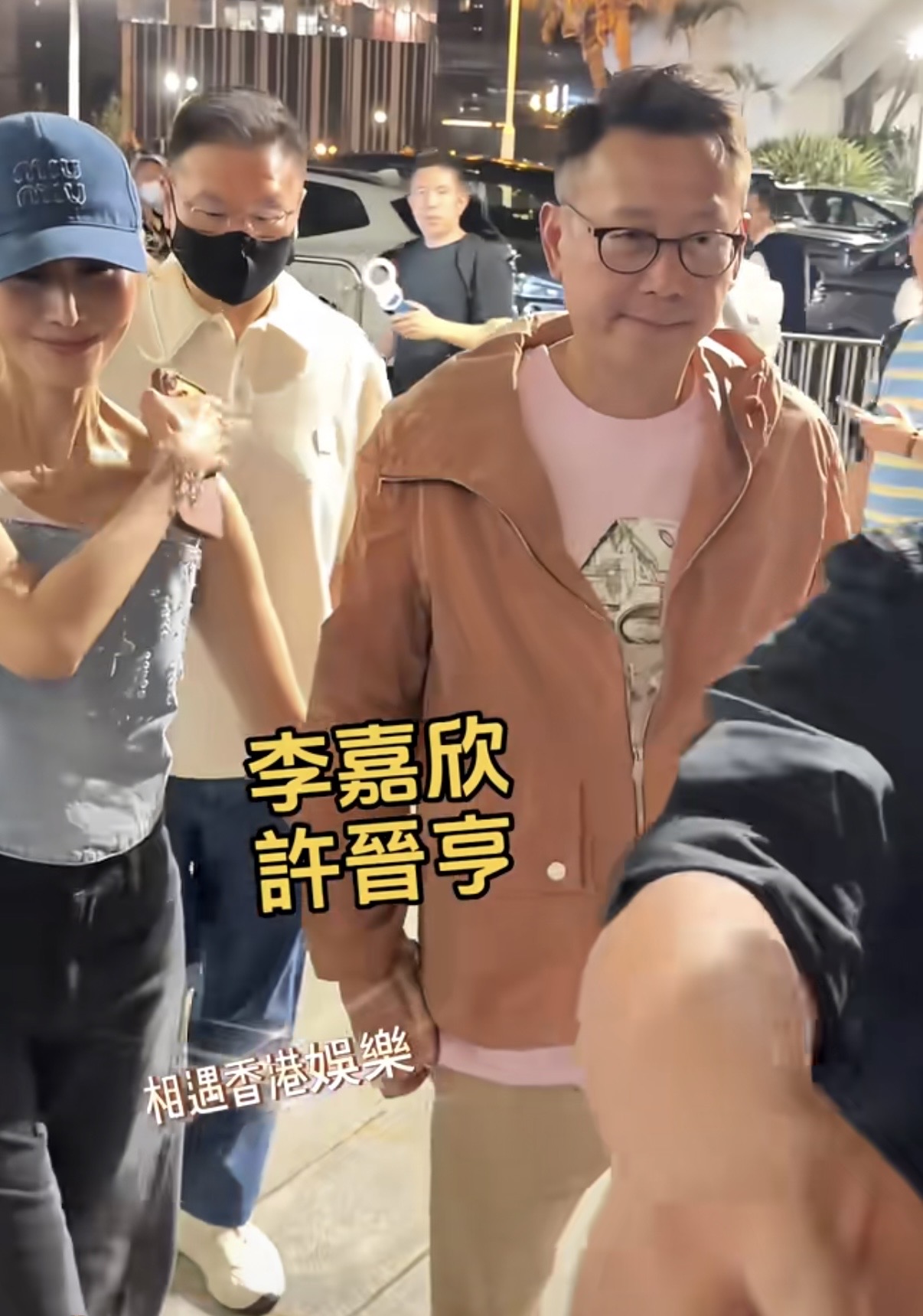 香港男子组合草蜢时隔四年在红馆举办一连七场的演唱会,演唱会第一晚就吸引大量的名人、明星来捧场。一众捧场的名人中,最受瞩目的莫过于李嘉欣夫妇。夫妻俩从搭乘保姆车抵达红馆开始,就成为焦点,入场后更是不得了,周遭不少观众都举着手机拍摄,而李嘉欣夫妇毫不介意,还很礼貌地打招呼,而全程许晋亨都小心呵护李嘉欣,尽显好丈夫风范。同行的还有李嘉欣姐姐李嘉明夫妇,姐妹俩同框不意外,罕见的是李嘉明的丈夫也在场。