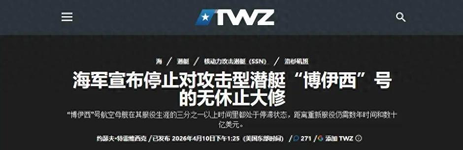 美国海军近日对外宣布,因为整体维修时间过长,且成本效益极低,美国海军正式放弃对博伊西号攻击型核潜艇的维修计划,并将其列入正式退役名单,并启动正式拆解程序。