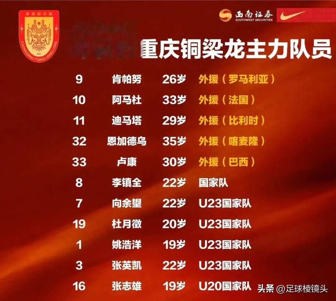 同时你看一下这个球队的配置,五个外援能力其实都不差,很多也都是从中超球队填补过来的!属于即插即用型的位置都非常合理,但最重要的是,铜梁龙这帮国内球员,他们的能力都是国家队级别的,同时都是年轻潜力十足的球员!加上第一年踢中超,内心的渴望,欲望和兴奋度都和很多老牌中超球队不同!