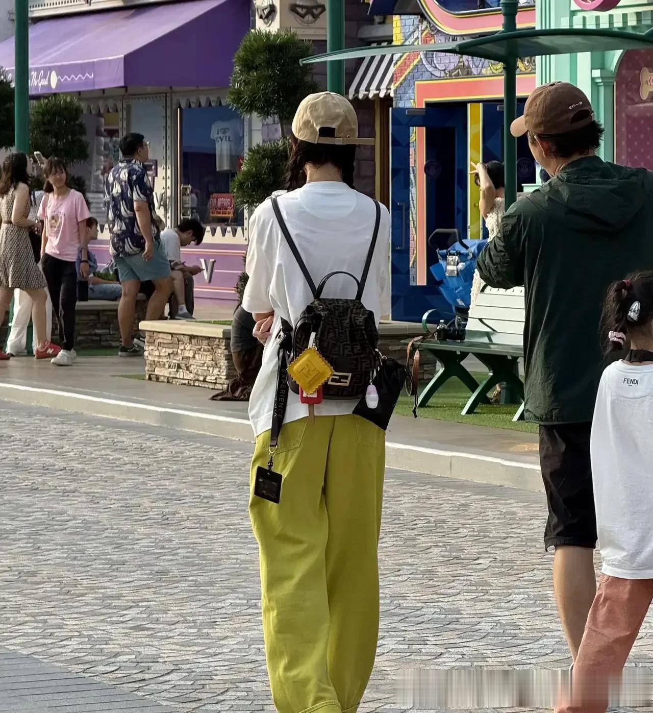 43岁的唐嫣,梳着两个麻花辫,打扮得好青春,背影完全像个大学生,双肩包上的挂件也是可可爱爱的那种。