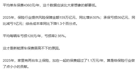 如果在2026年续保的时候,你会发现电动汽车的保费其实已经有了一定程度的下降。这主要是因为新能源汽车商业保险承保的规模大幅度提升,并且盈利信号已经凸显。