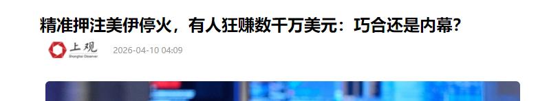 3月23日,特朗普宣布推迟打击伊朗能源设施前15分钟,同样有人精准卖出5亿左右美元石油期货,事后油价大跌,赚得盆满钵满。