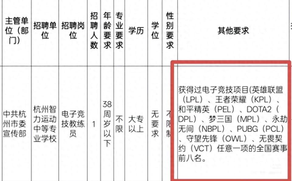 近日,杭州智力运动中等专业学校公开招聘,一则电竞教练员岗位,直接炸翻全网。