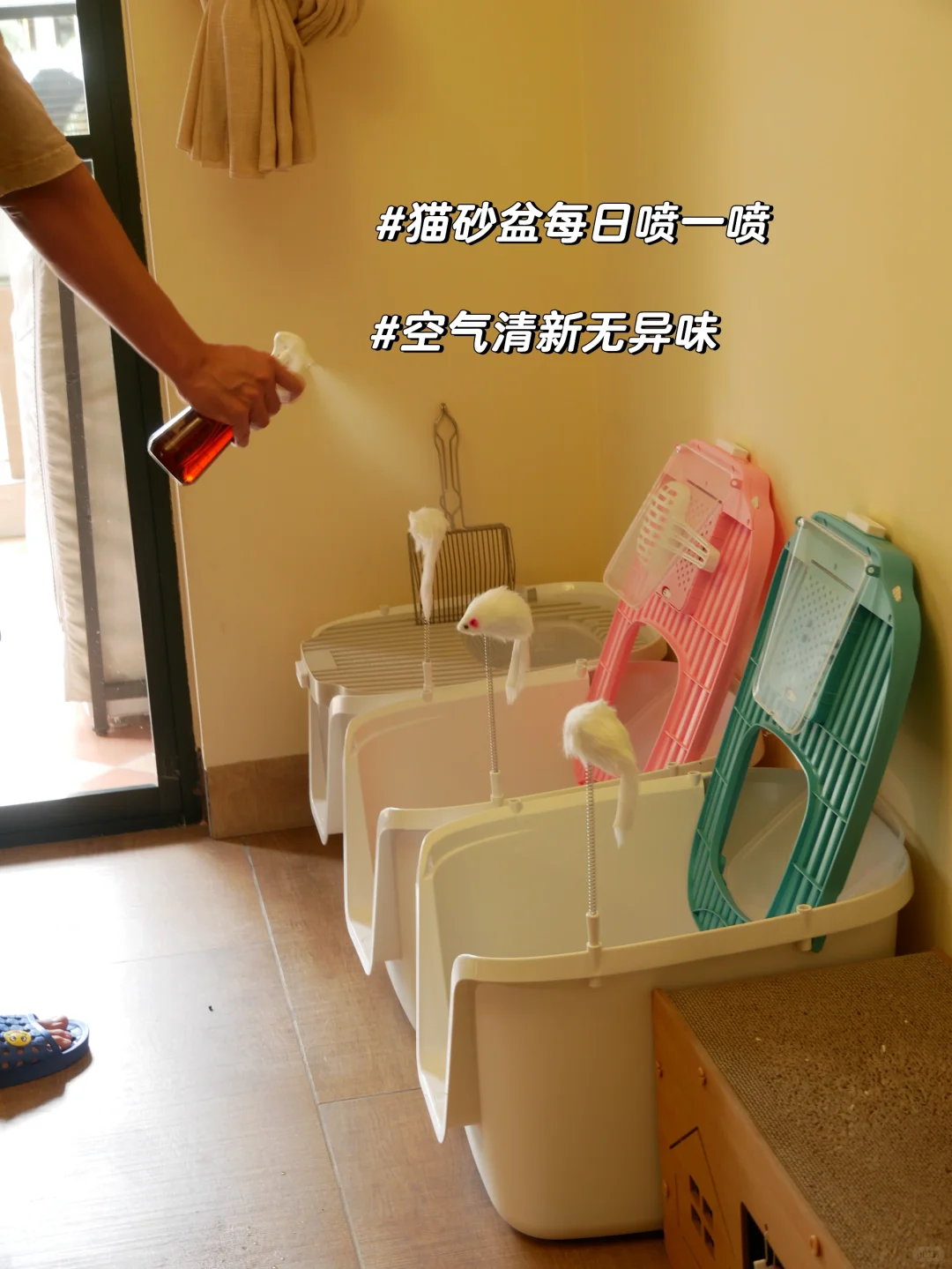 每次铲完猫砂用除臭喷雾喷🌸一遍,