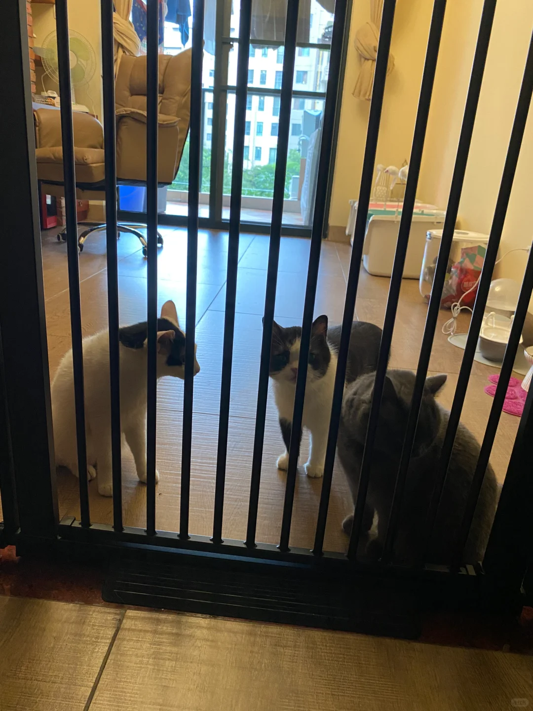 我家三只猫咪🐱配四个厕所,有三个厕所在书房,一方面是我在书房的时间更长,可以陪小猫咪,另一方面书房有独立阳台,气味容易散去。