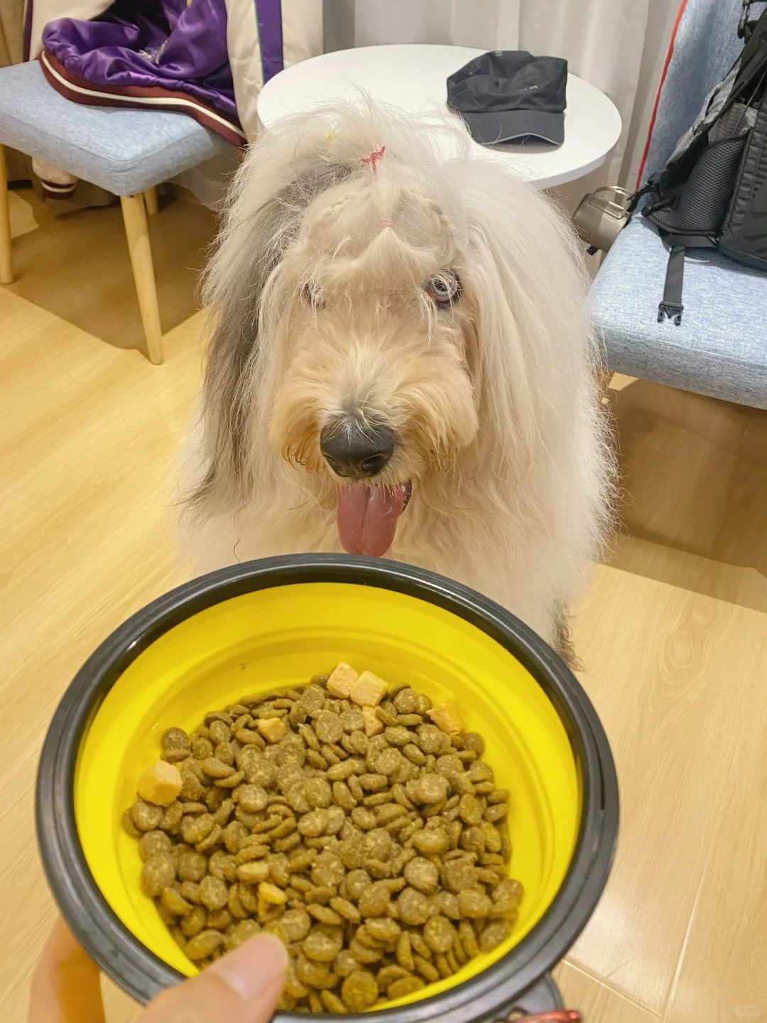 选择这个狗粮是因为每颗里面都有骨汤冻于夹心,酥酥脆脆的,颗粒很小老年犬容易咀嚼。