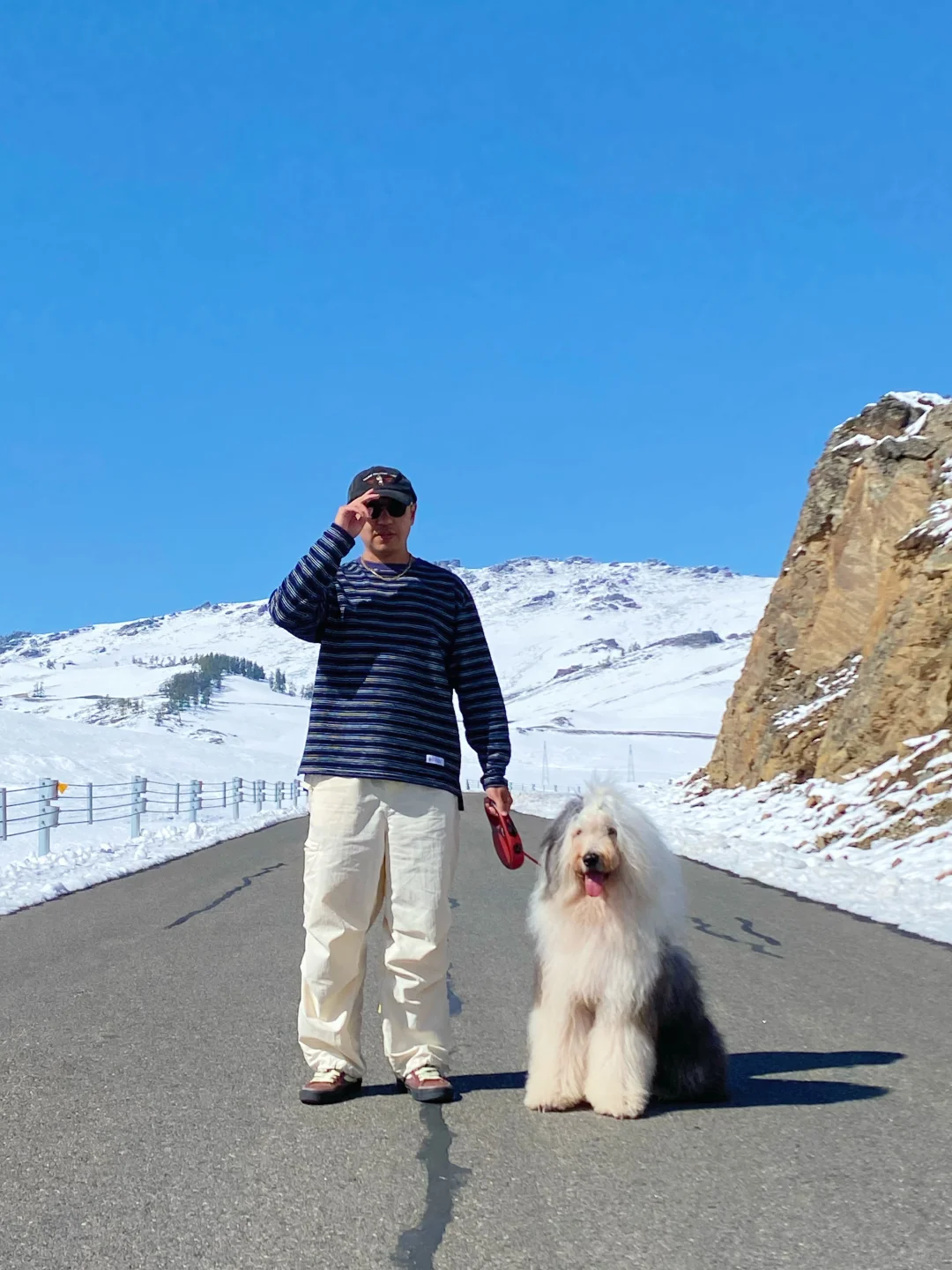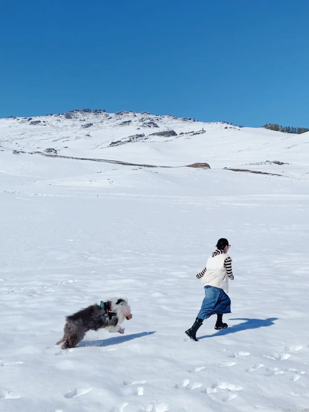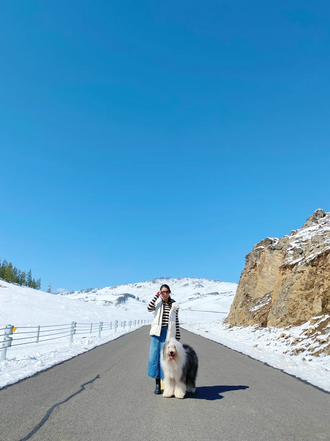 路上满山遍野的白真的太美了,可以尽情和狗子奔跑。