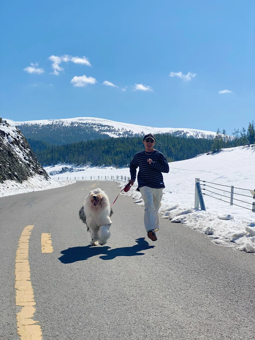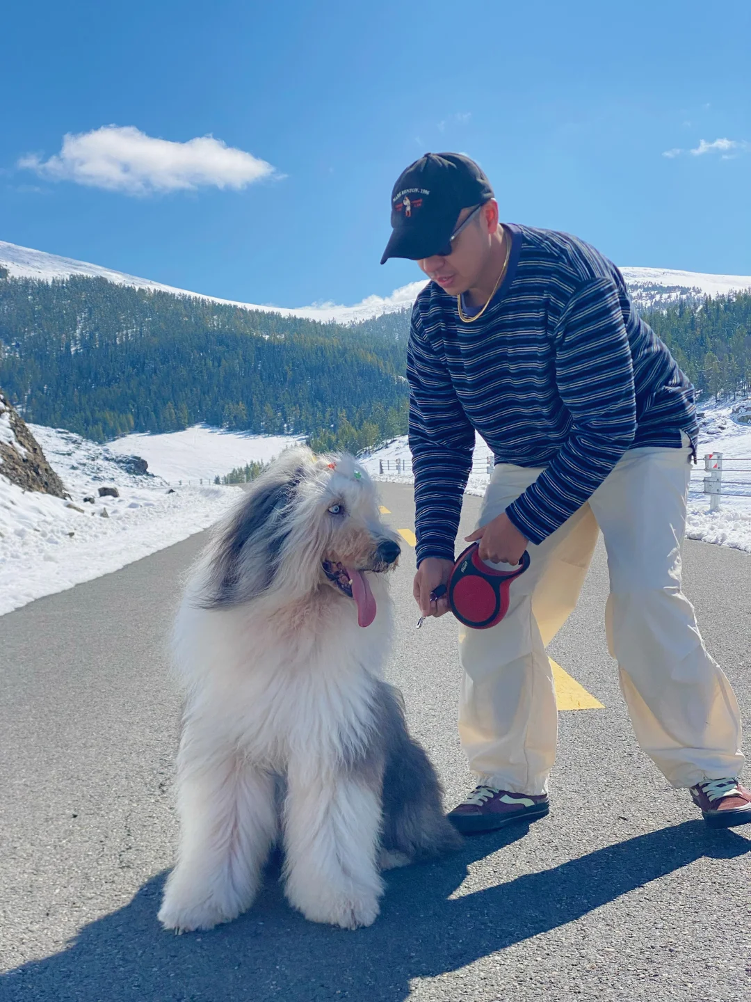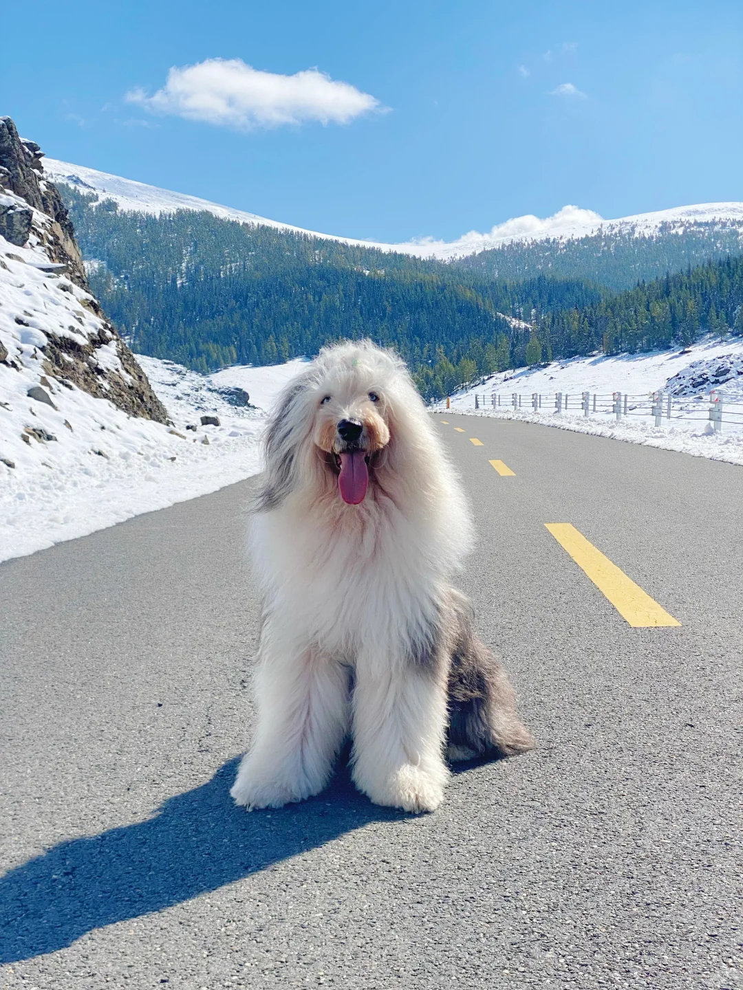 路上满山遍野的白真的太美了,可以尽情和狗子奔跑。