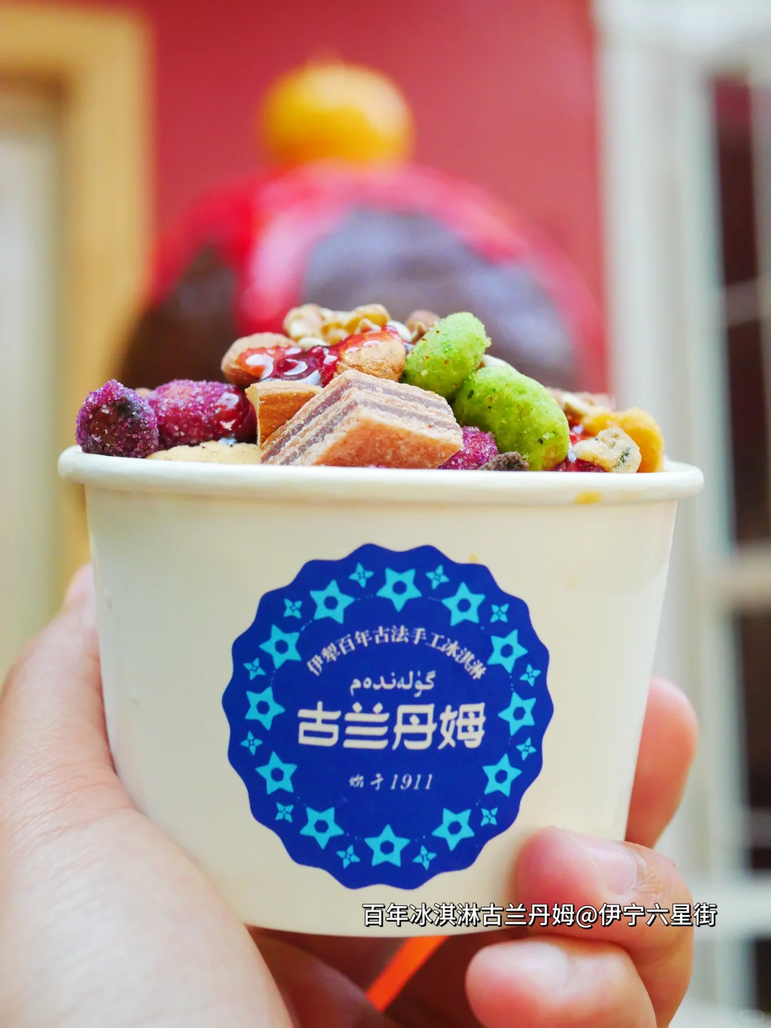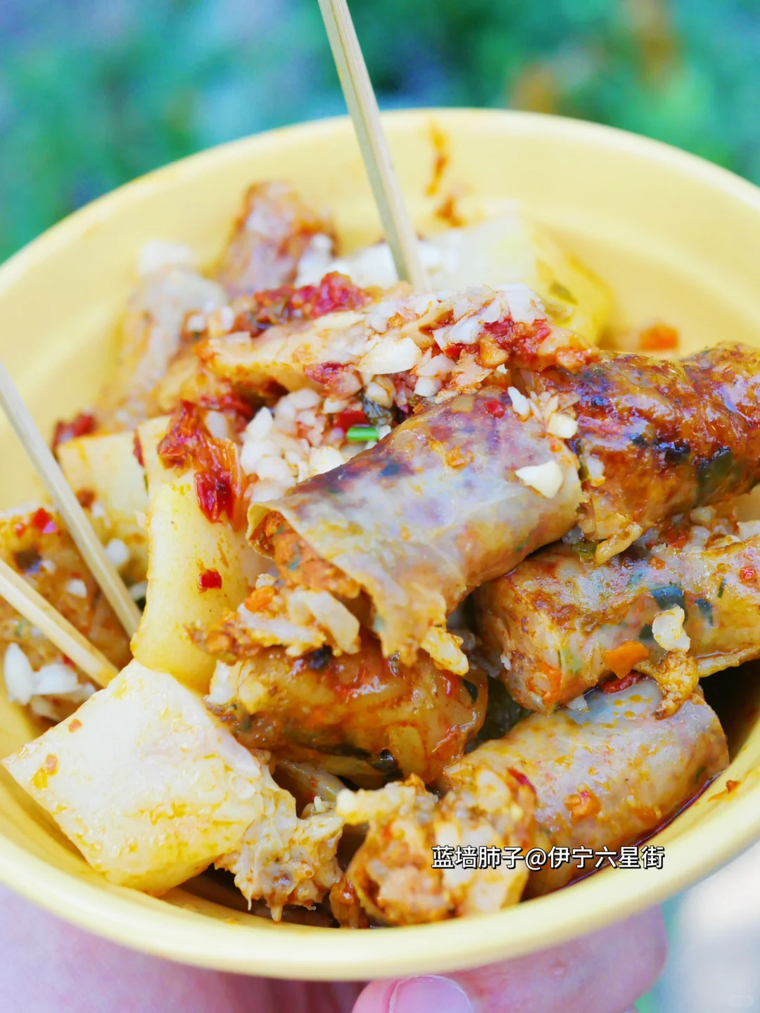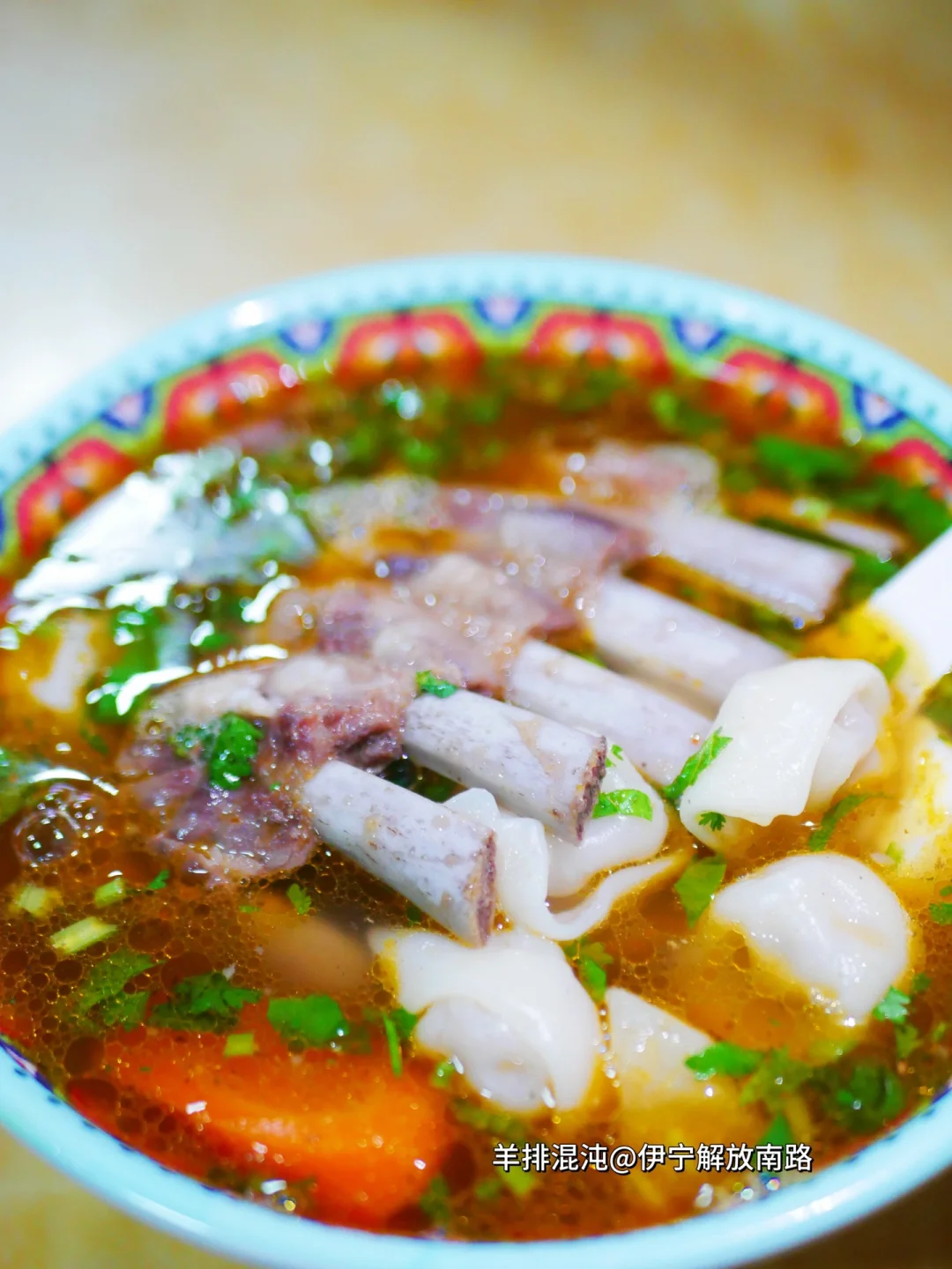 在伊宁一碗羊排馄饨15块,还可以免费加羊排!羊肉串🍖8块钱,超大串!蓝墙肺子8块,一碗手工冰淇淋9.9各种配件坚果随便加[色色R]