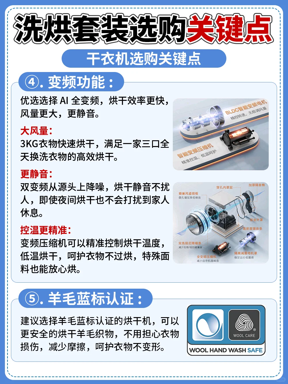 优选选择AI全变频,烘干效率更快,风量更大,更静音,控温更精准。