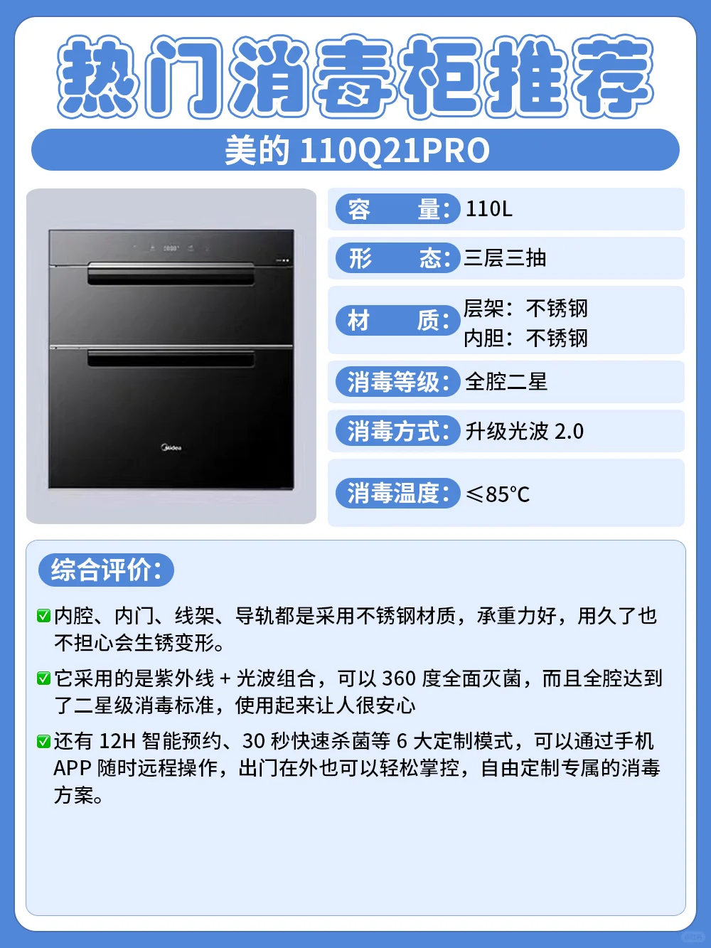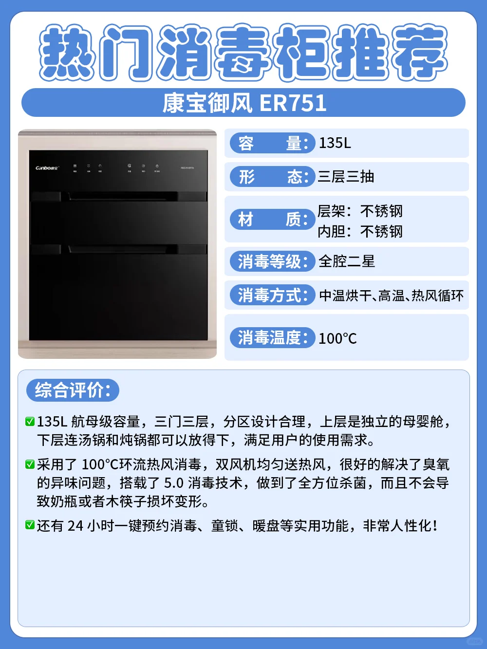 下面给大家选出几款口碑比较好的消毒柜,可以根据自己的需求来选择!