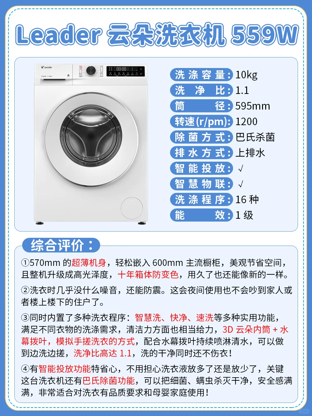 在这里给大家推荐一下✨我家这台统帅Leader云朵洗衣机559,整体使用下来真的很不错。