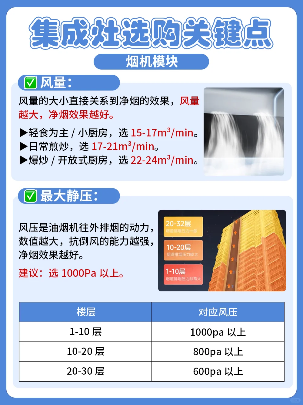 风量越大,净烟效果越好,有爆炒需求的建议选择24m³/min以上