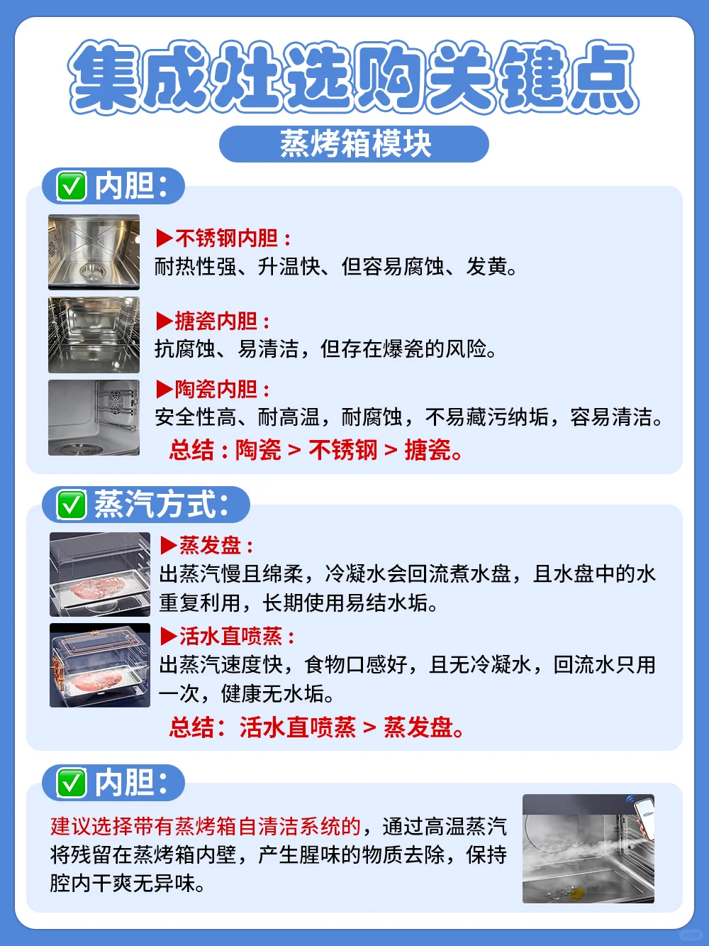 建议选自带高温蒸汽洗的集成灶,可以通过高温蒸汽瓦解油垢,洗净率达到99%以上,用起来更省心。