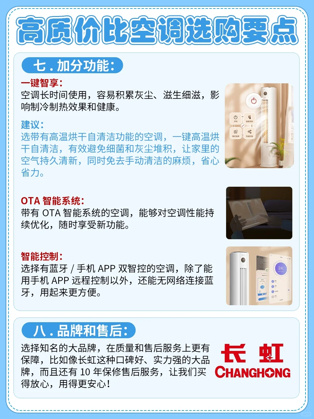 ▶️一键智享功能可以自动感应环境调节温度和风速,省去反复调节的麻烦!还可以通过OTA智能系统,能够对空调性能持续优化,随时享受新功能。