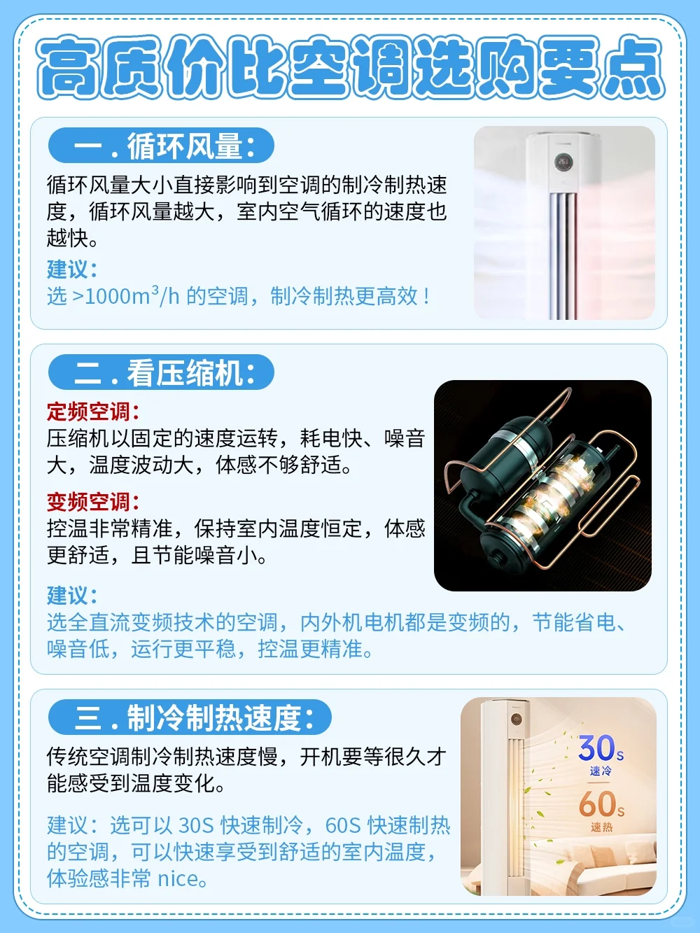 建议选可以快速制冷制热的空调,快速享受到舒适的室内温度,体验感非常nice。