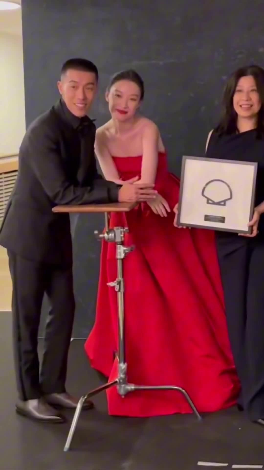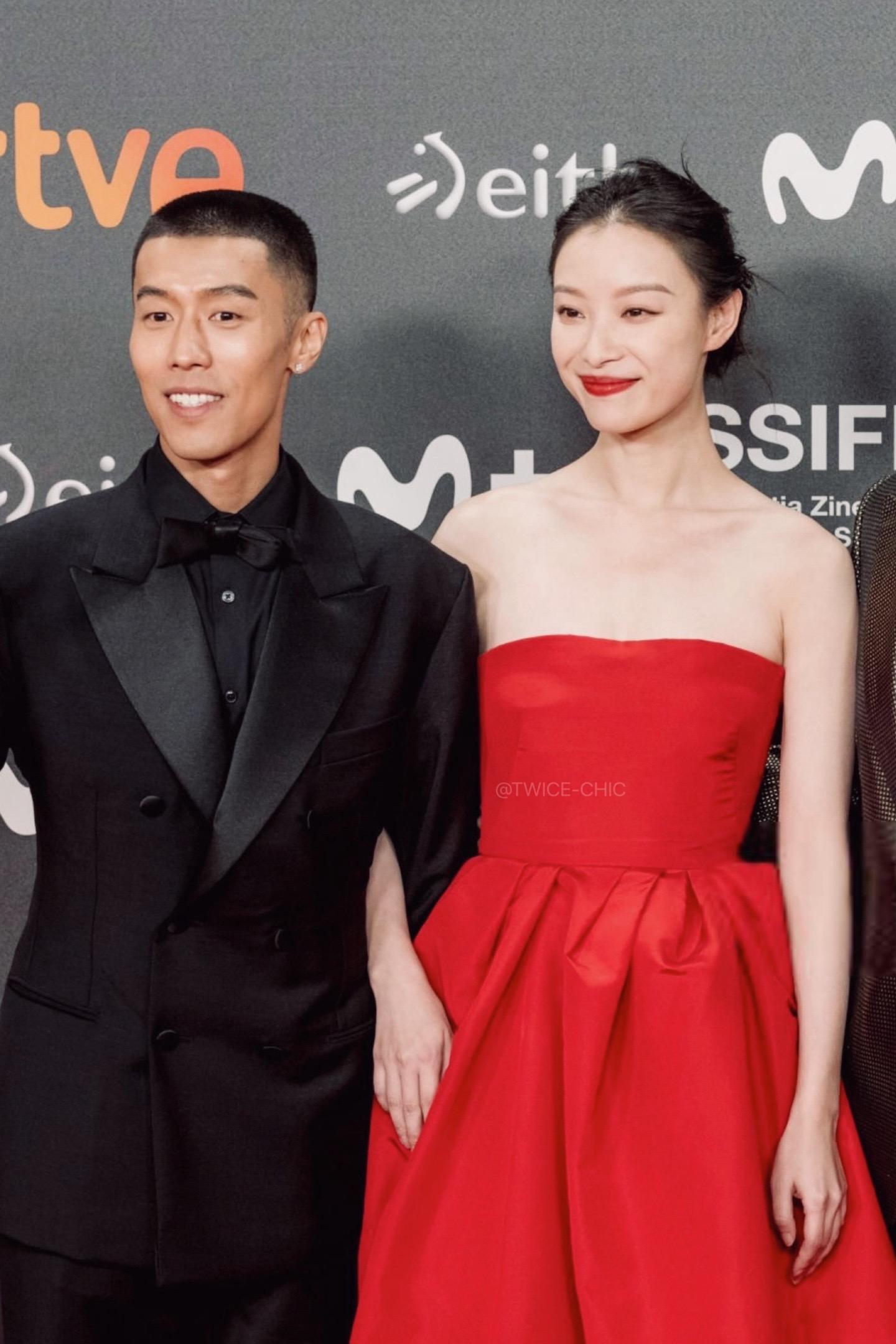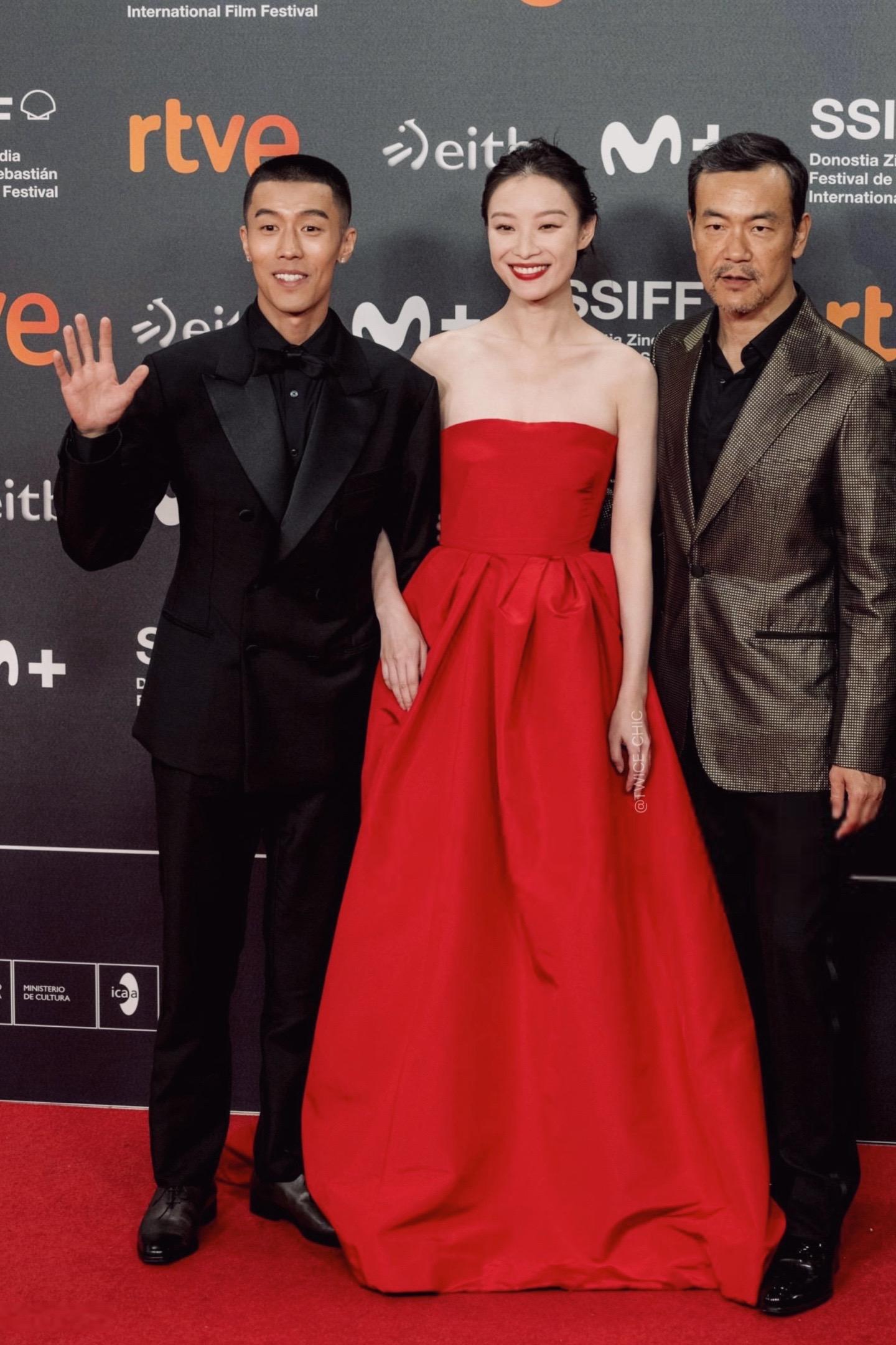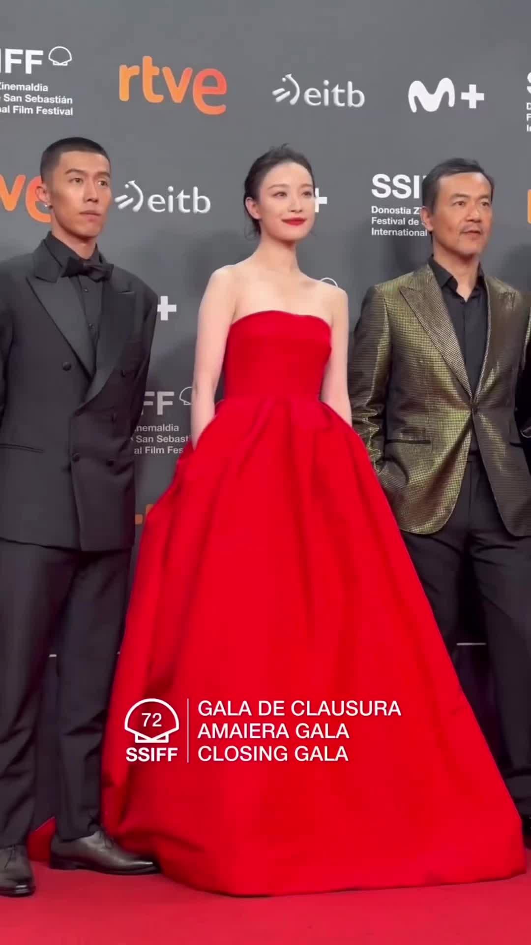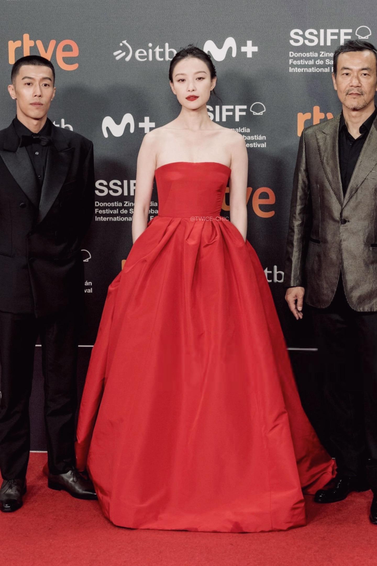 倪妮今日圣塞闭幕红毯造型 Carolina Herrera明媚红裙...