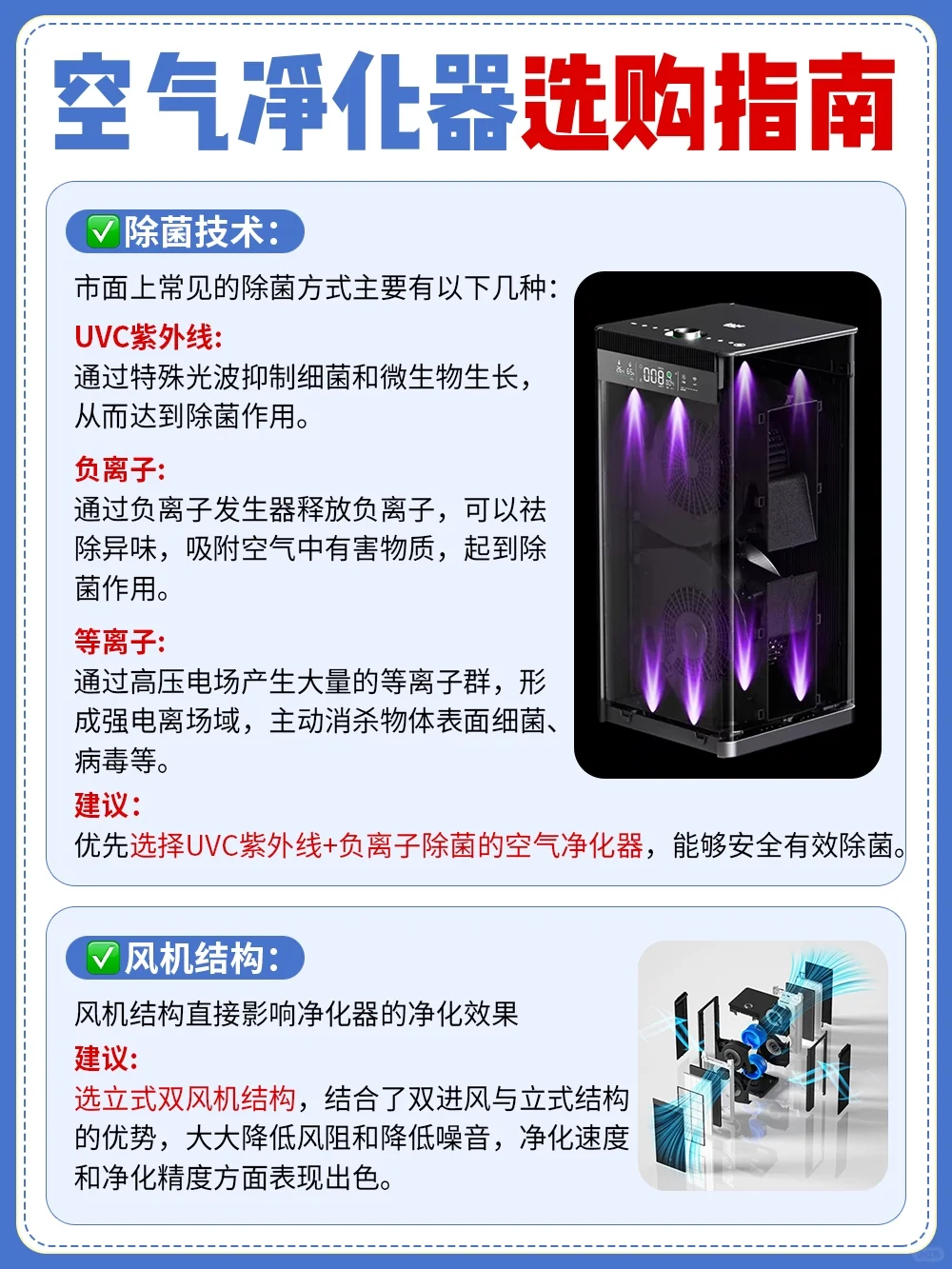 建议优先选择UVC紫外线+负离子除菌的空气净化器,能够安全有效除菌