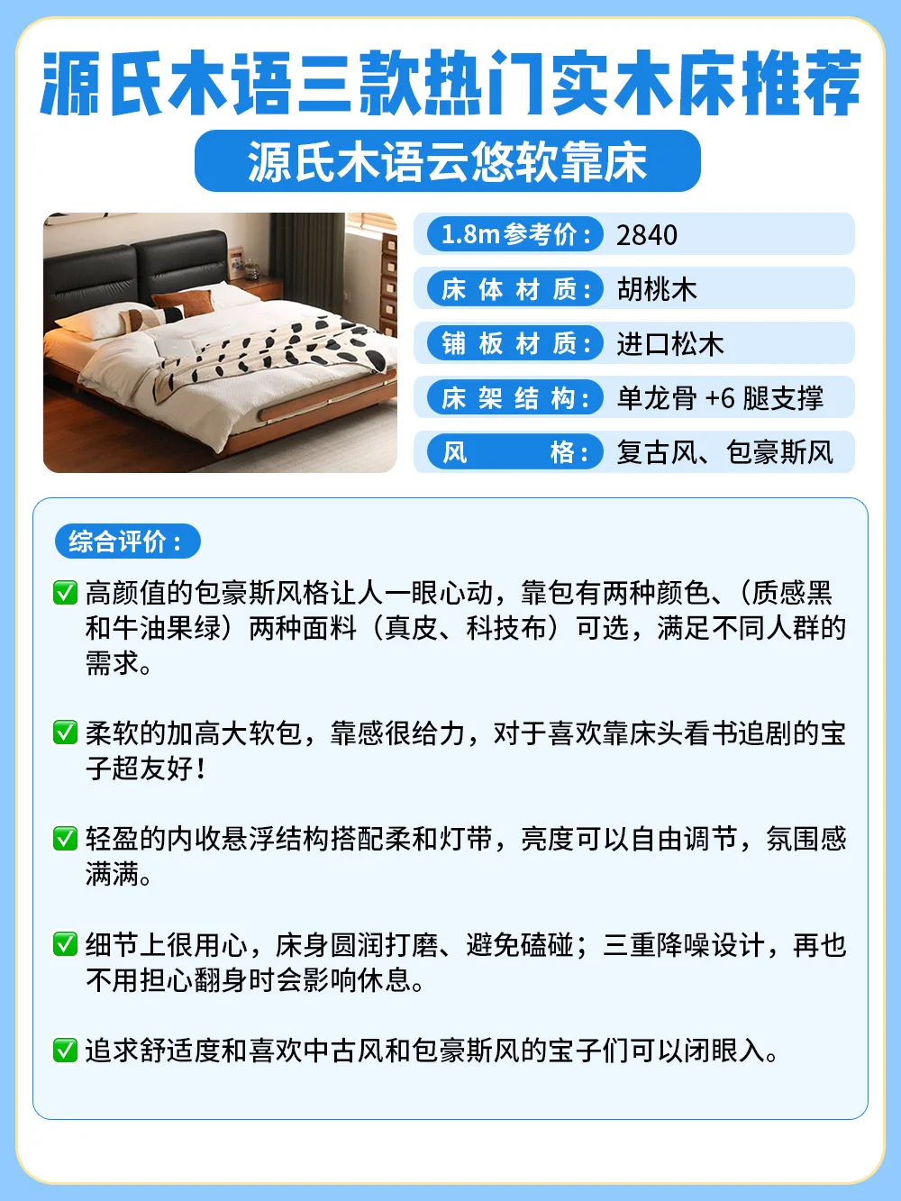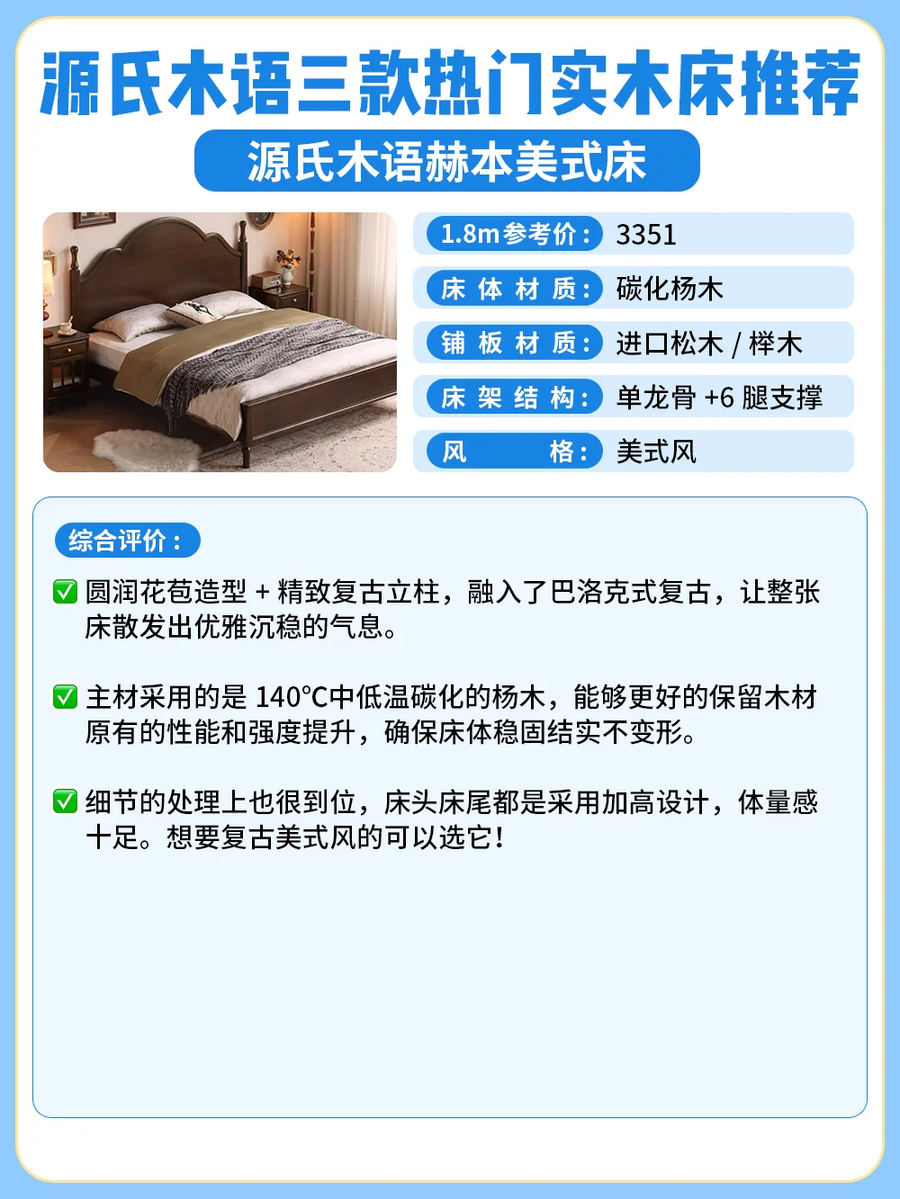 为了方便宝子们抄作业,猴哥给大家找了3款来自源氏木语的热门实木床,各有特色,可以根据自己的需求来选择!
