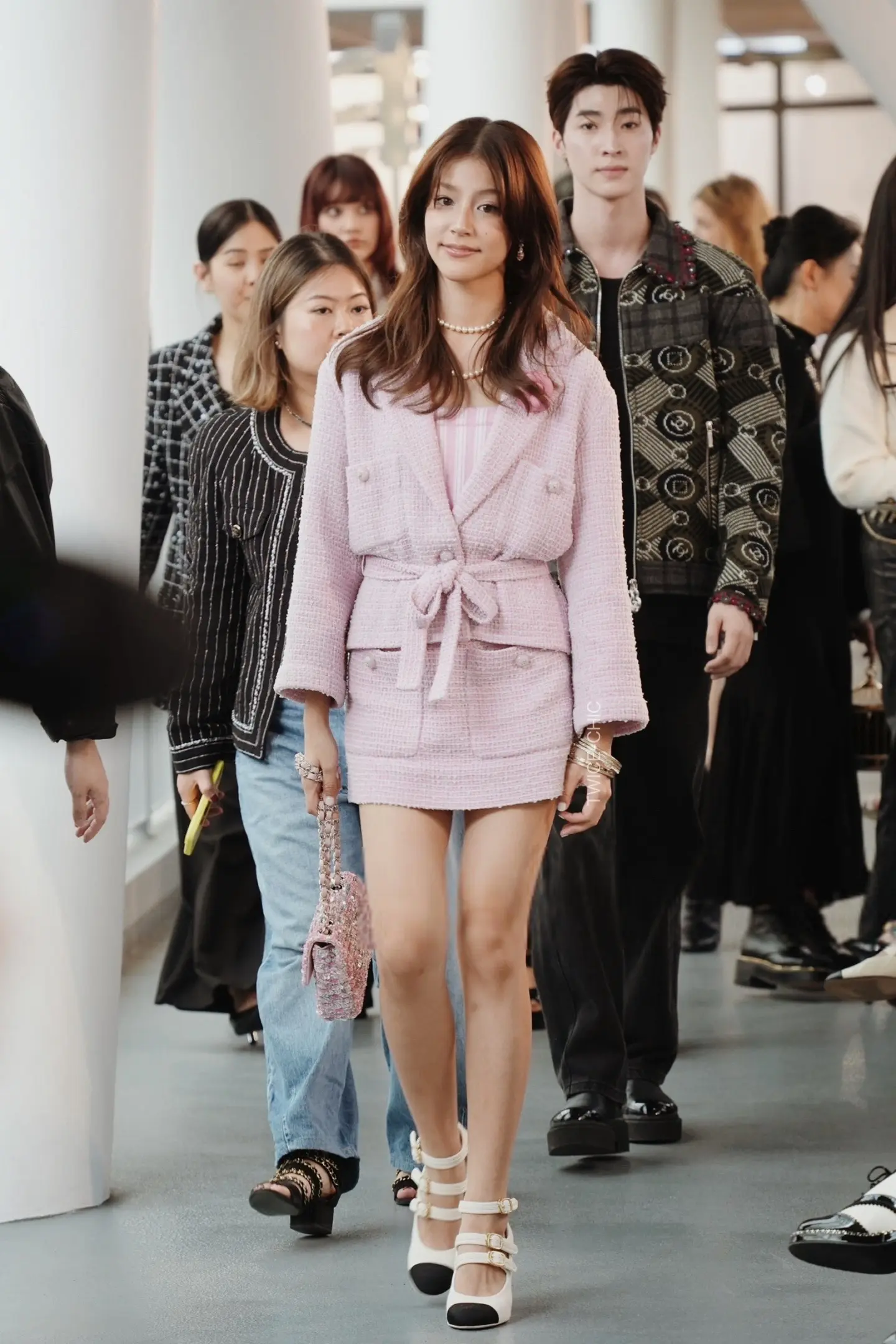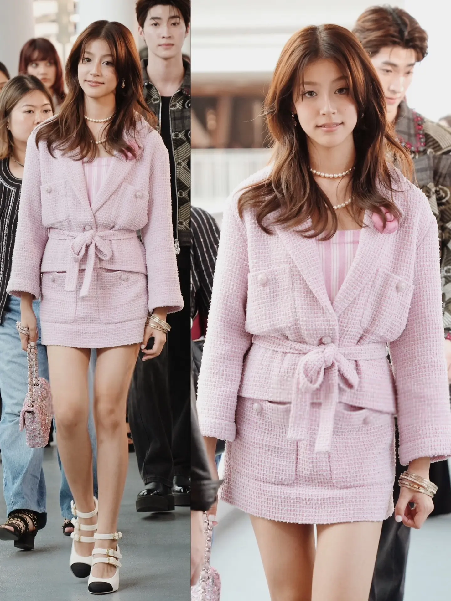 CHANEL香港大秀上19岁的她,吸引了我的目光! 来自泰国曼谷,今年19岁的新人模特演员Baipor昨日亮相🦢香港大秀,一袭粉色呢套装搭配亮片手袋,棕色卷发映衬精致小脸,在一众嘉宾里也毫不逊色!