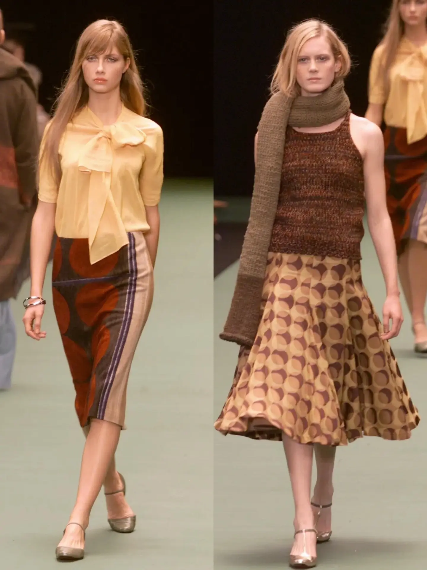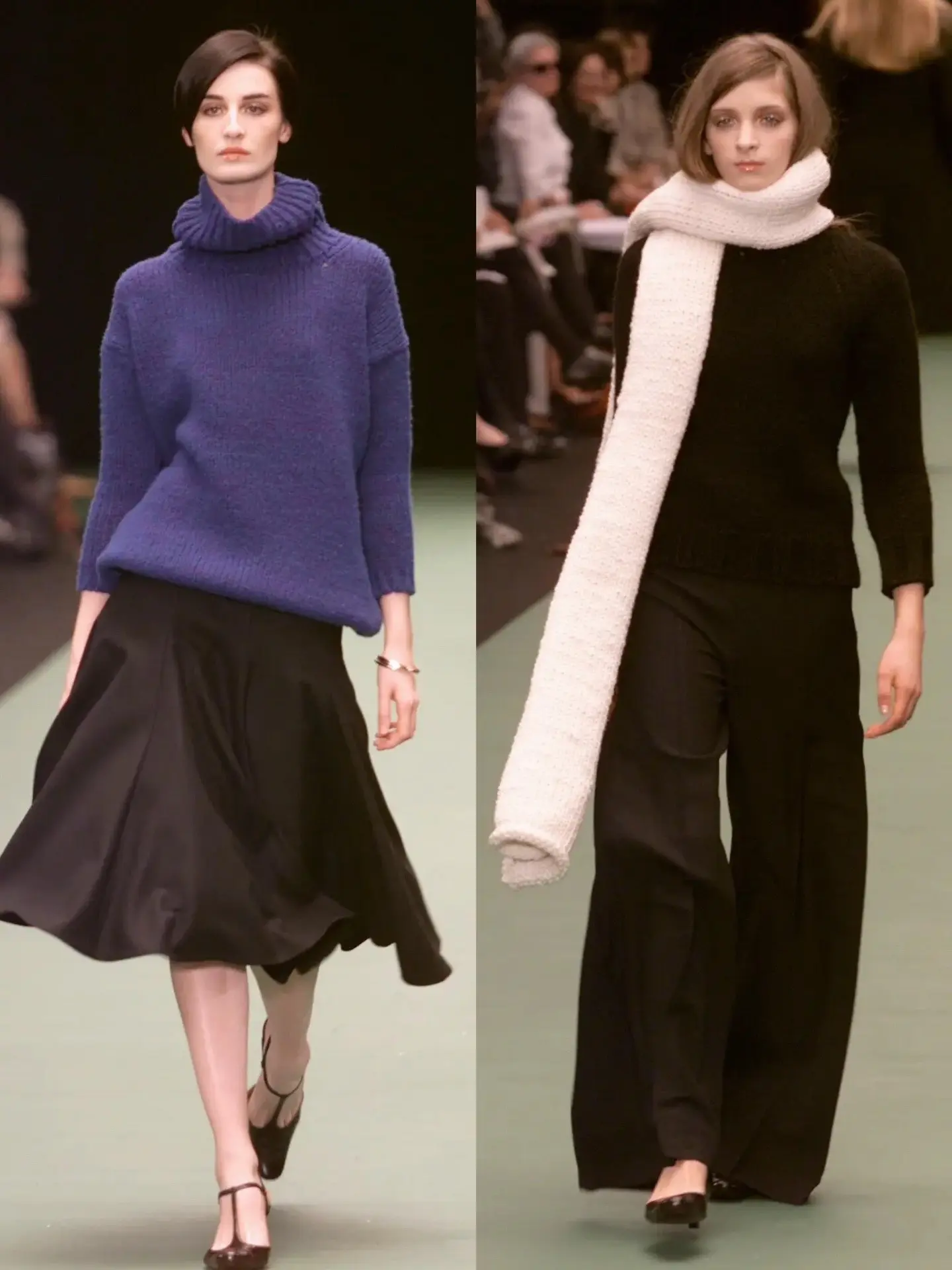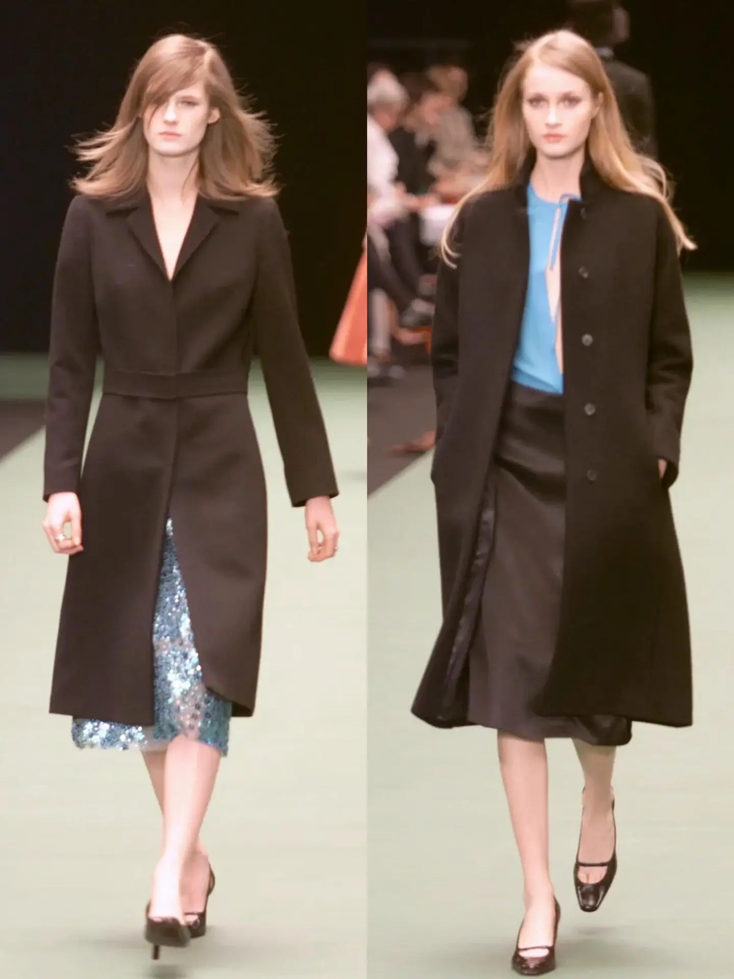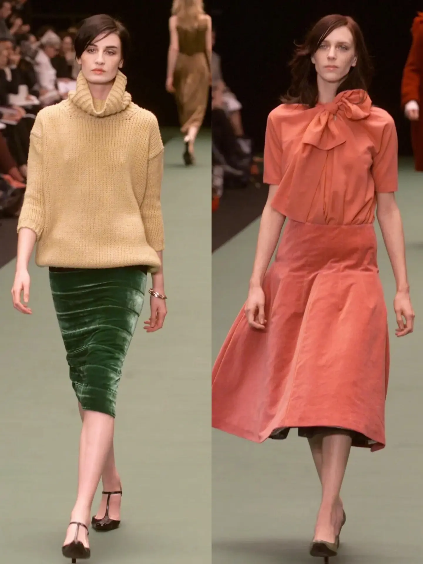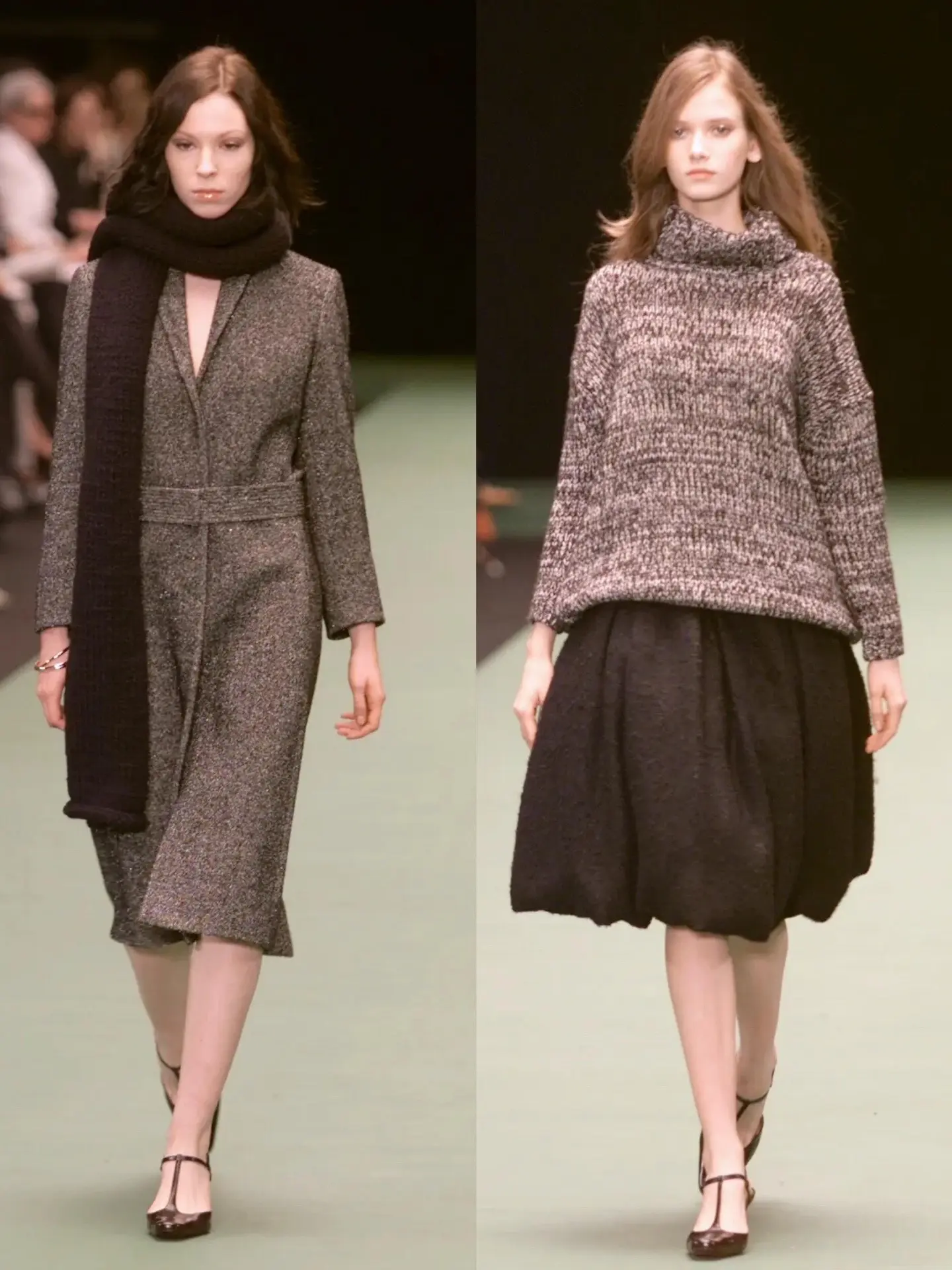 80年代经典的浓郁色块,90年代正热的学院风潮,00年英伦女孩的简约纯粹… 融合而成立了这组历经时光沉淀,耐看如初的千禧年秀场。
