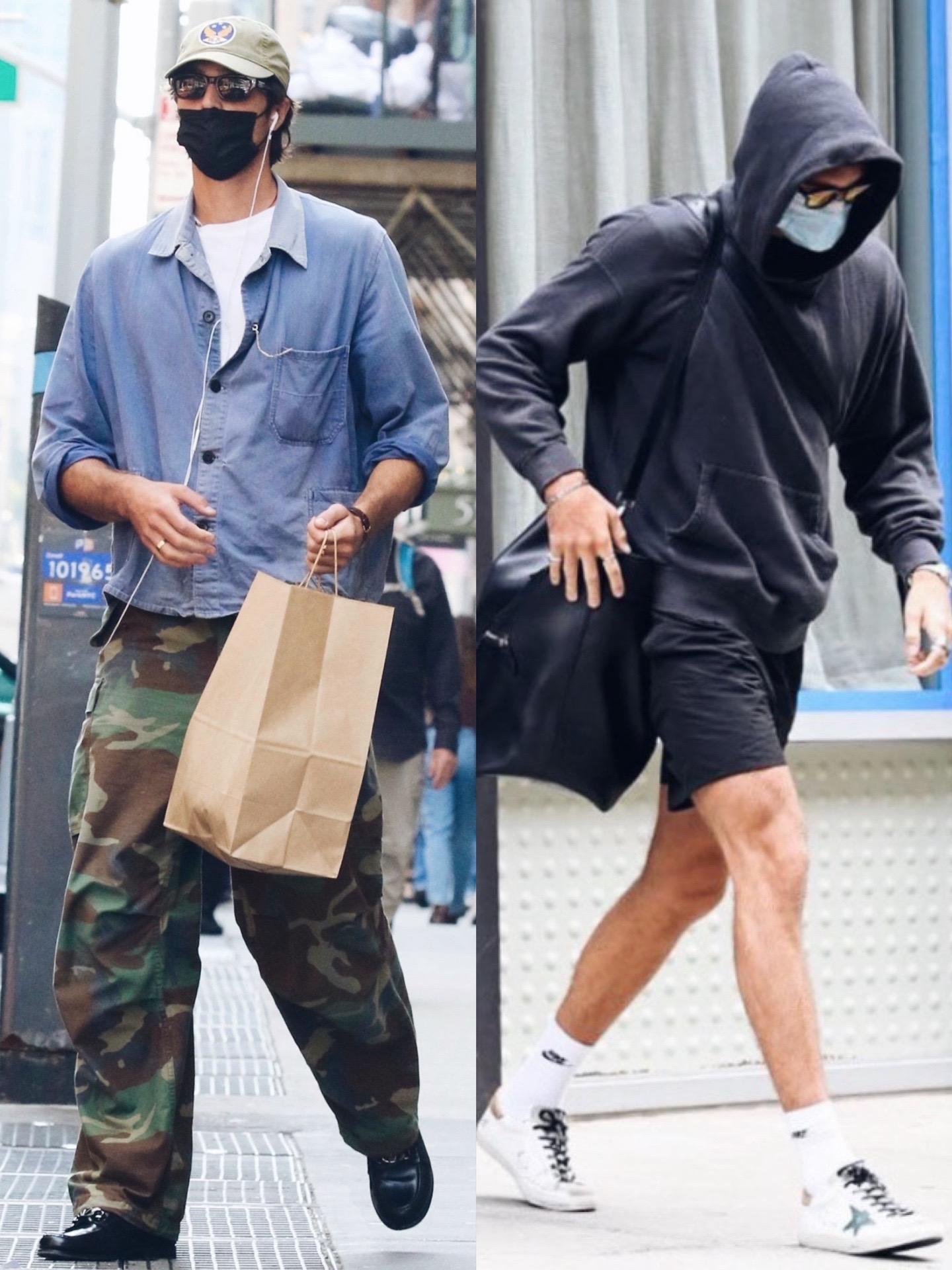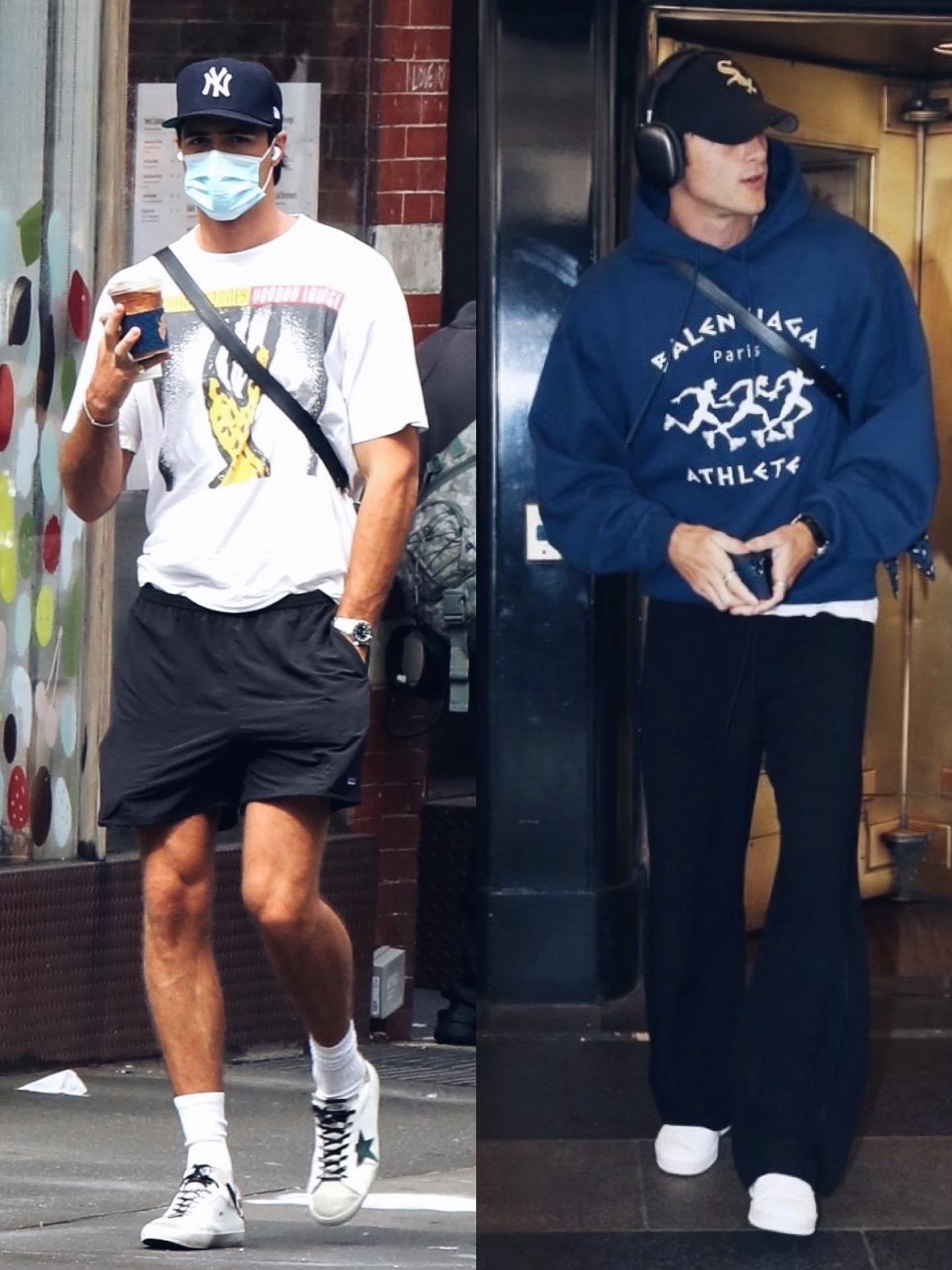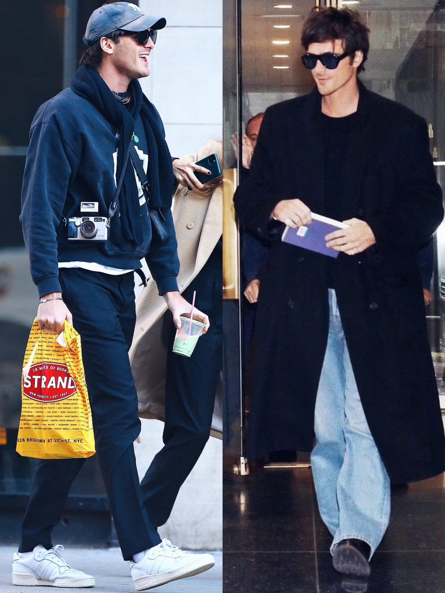 美式休闲为主,偶尔复古街头,看似不定的组合中半永久配饰是他完成当日造型的关键。半永久帽子、墨镜、大T、运动鞋… 懒散与精致热烈碰撞,配上高挑且有线条感