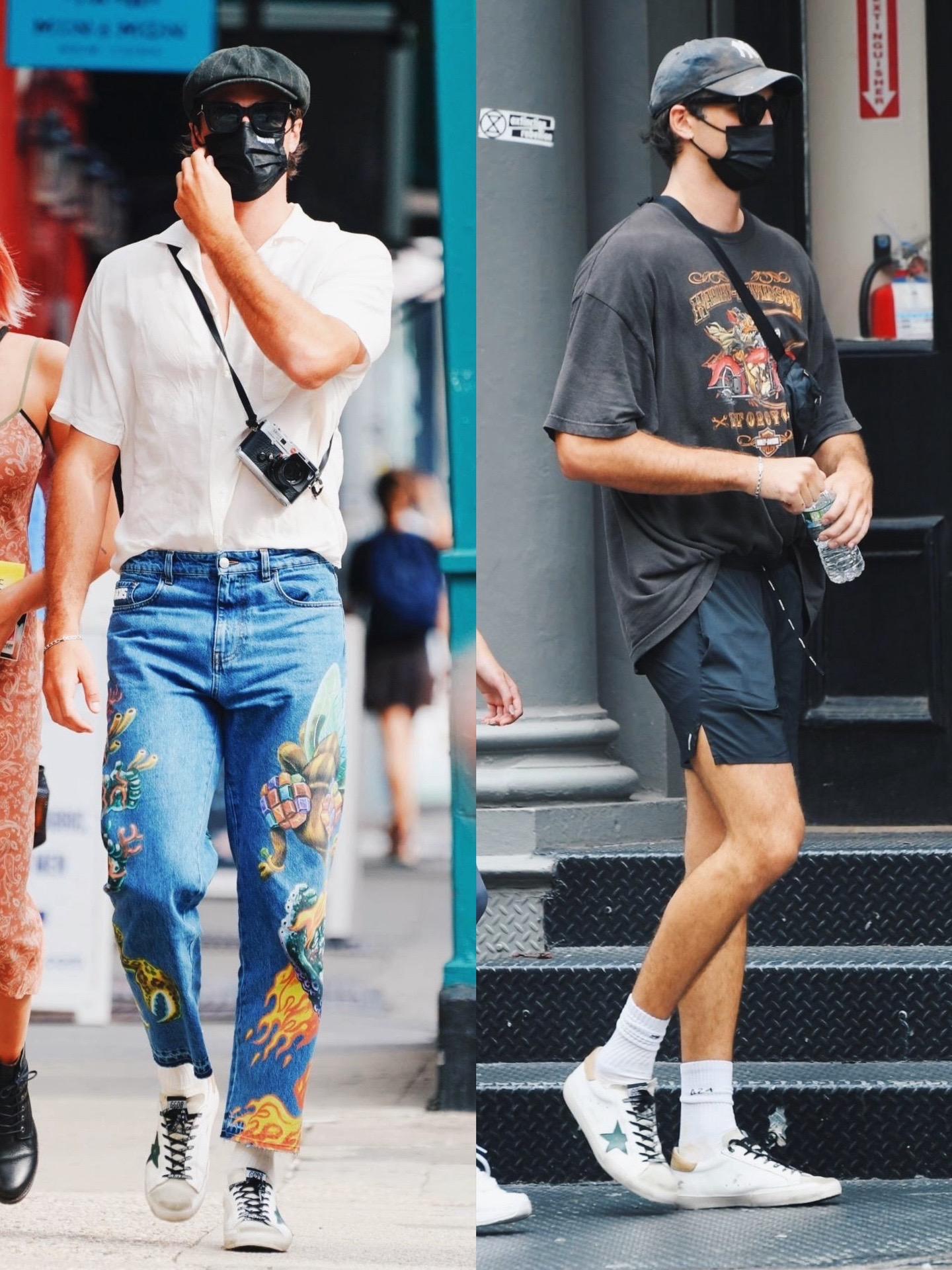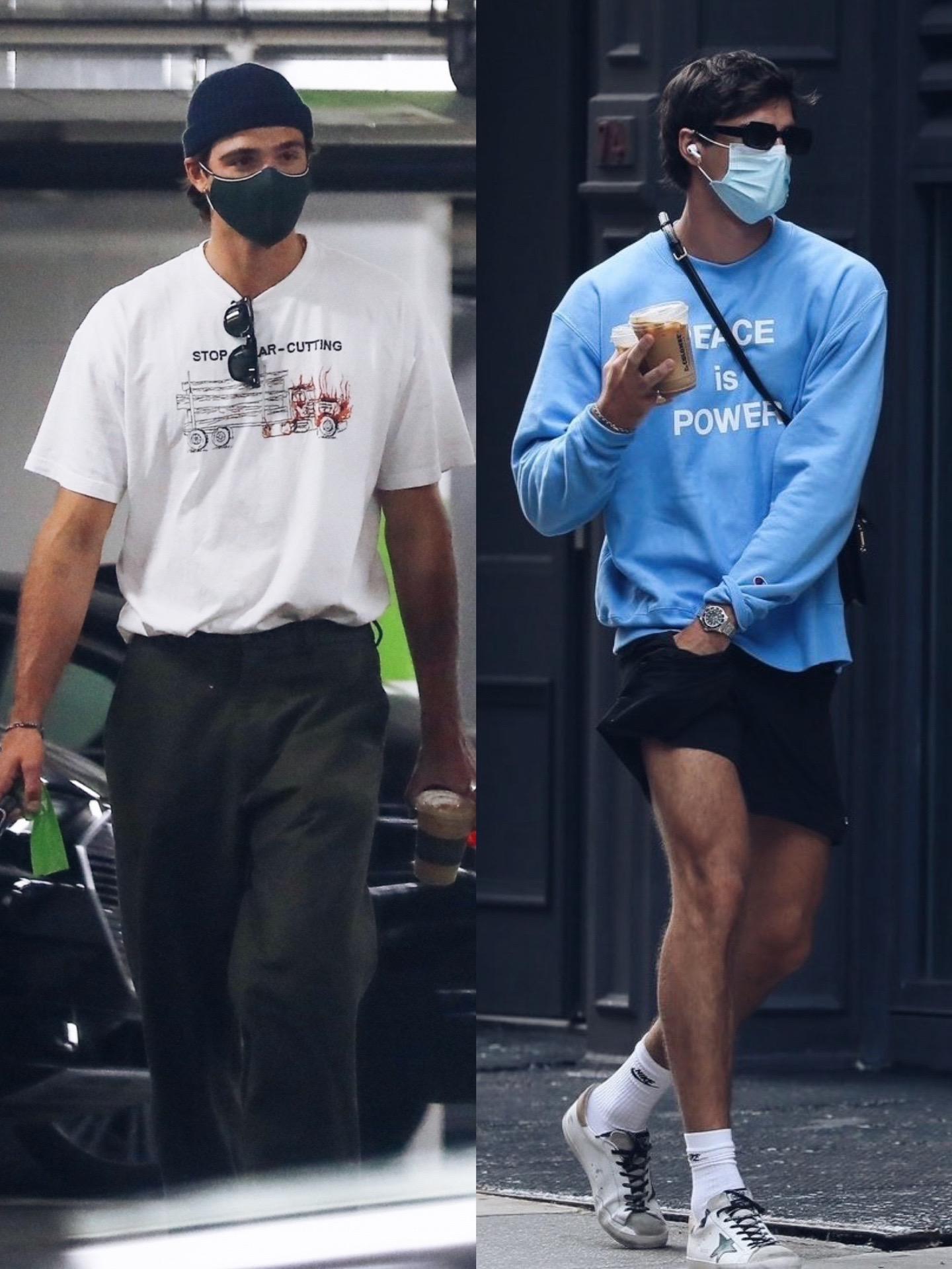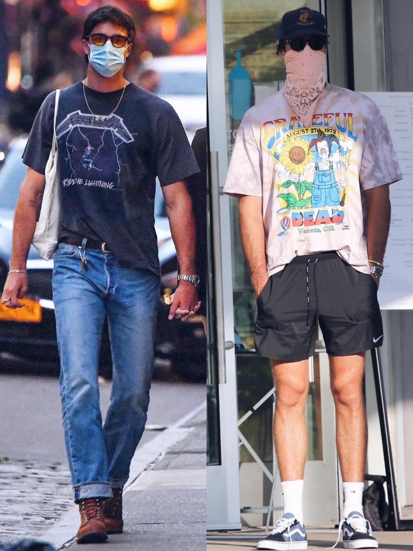 美式休闲为主,偶尔复古街头,看似不定的组合中半永久配饰是他完成当日造型的关键。半永久帽子、墨镜、大T、运动鞋… 懒散与精致热烈碰撞,配上高挑且有线条感