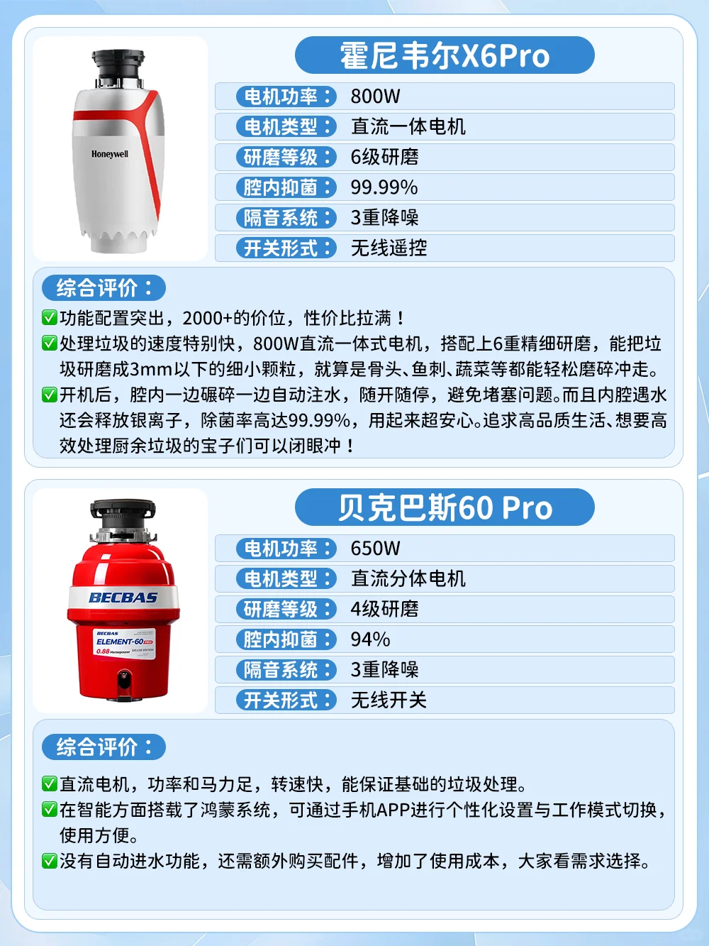 [斜眼R]对比了12款热门垃圾处理器,我个人推荐✨霍尼韦尔X6 Pro,对比同类产品功能配置突出,2000+的价位,性价比拉满‼️