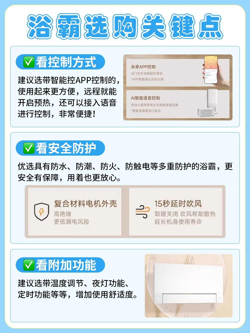 ✅支持米家APP+语音控制,简单好操作,还有夜灯、定时等加分功能。追求舒适高洗浴体验和有老人小孩的家庭可以放心冲!