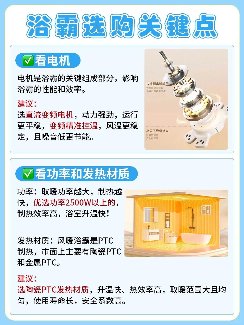 选有防水、防火、防触电等多重防护的浴霸,更安全有保障