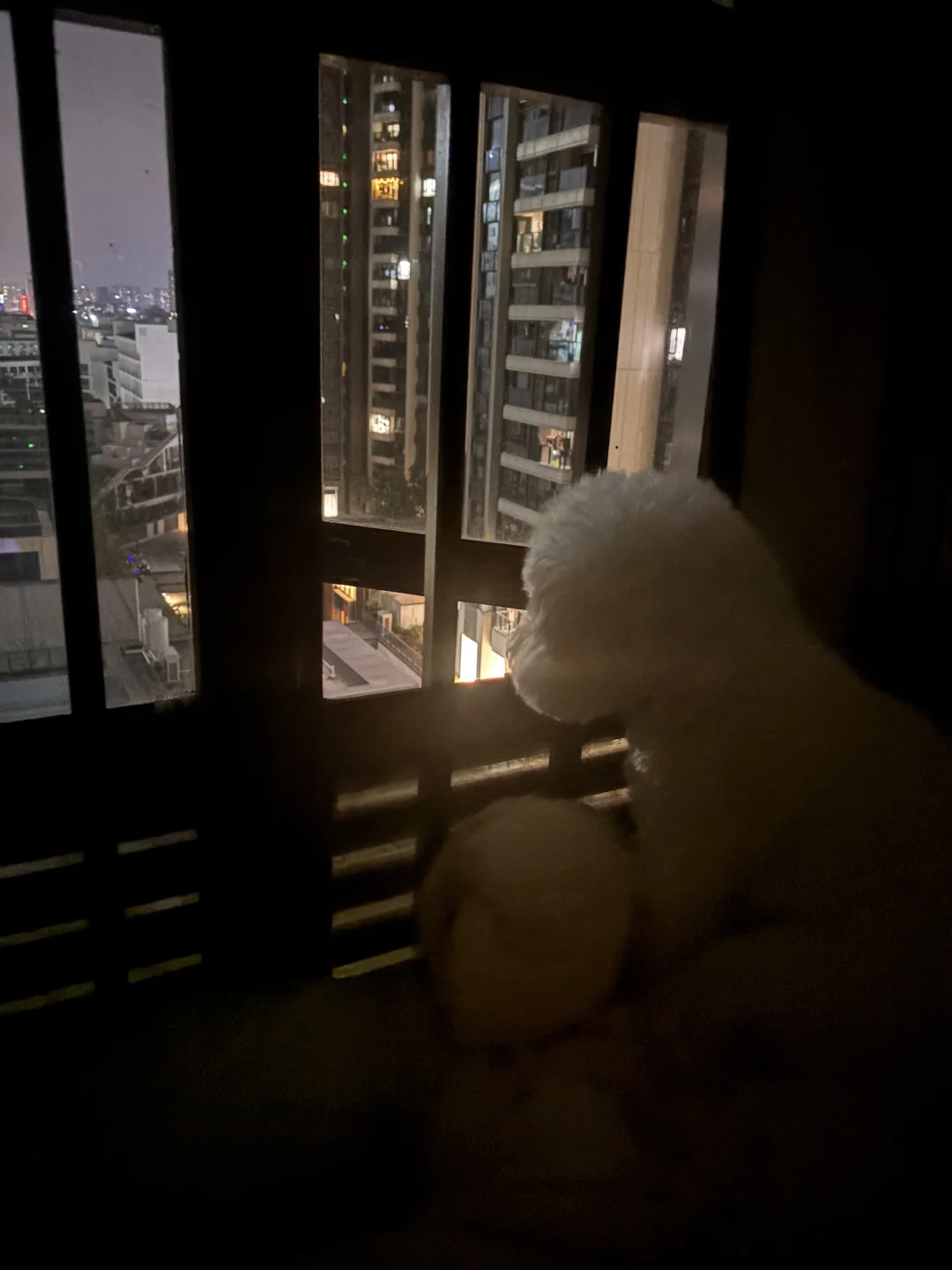 半夜醒来起猛了,发现我的小狗在独自赏月🌙