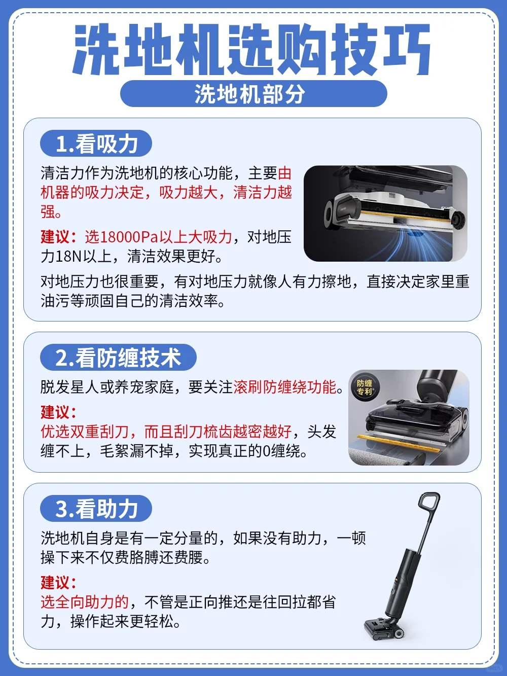 建议选18000Pa以上大吸力,对地压力18N以上,清洁效果更好。
