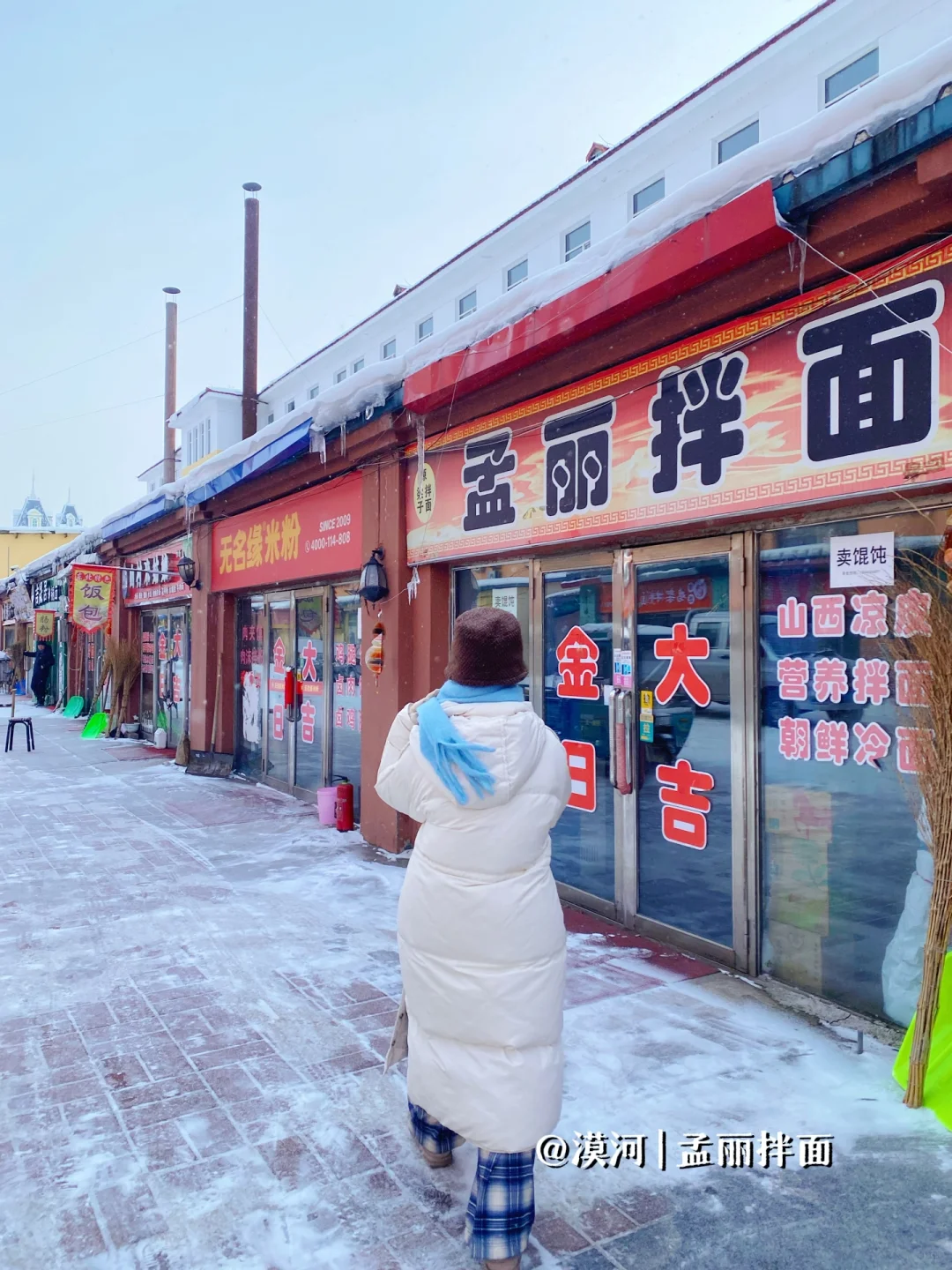 漠河|孟丽拌面,零下十几度吃拌面我是没想到的!但是室内超暖和,吃得特爽,我吃不完直接打包路上吃了!