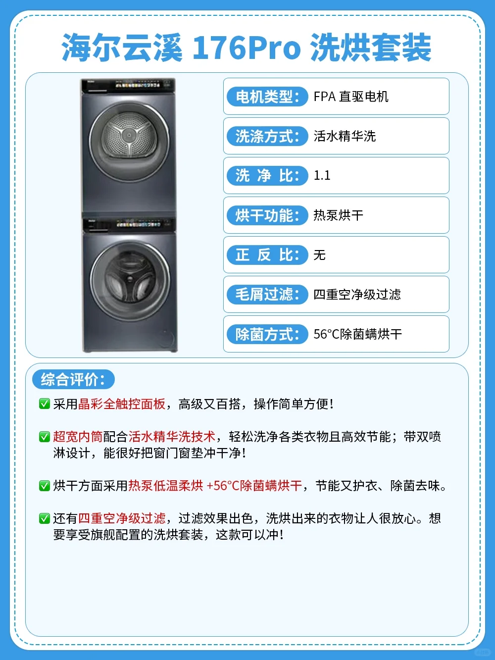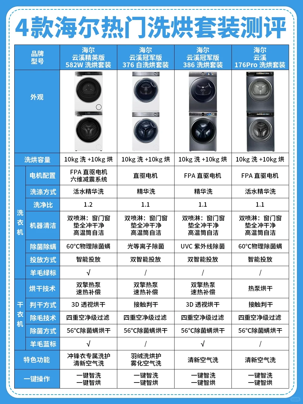 [斜眼R]总的来说,这4款热门海尔云溪系列的洗烘套装各有优势,可以按自己的需求来选择!如果觉得这篇笔记对你有帮助,可以收藏一下哦!