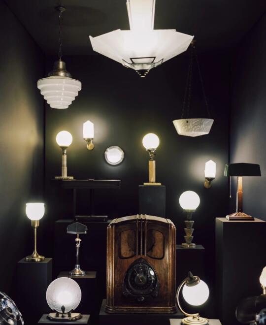 - 灯光设计:灯具常融入几何图案和金属材质。