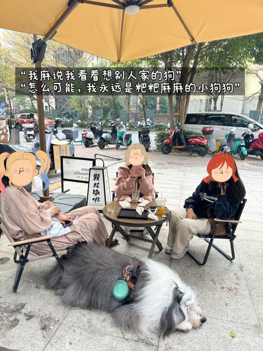 一起去喝咖啡,它趴在别人的桌边真的很想别人家的狗,社牛狗狗简直不要太可爱☕️。