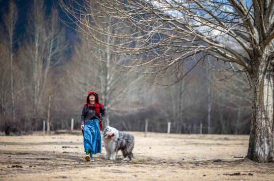 也是因为没有春回大地,除了我们没有其他游客,我们就可以放绳子给狗子们肆意奔跑。