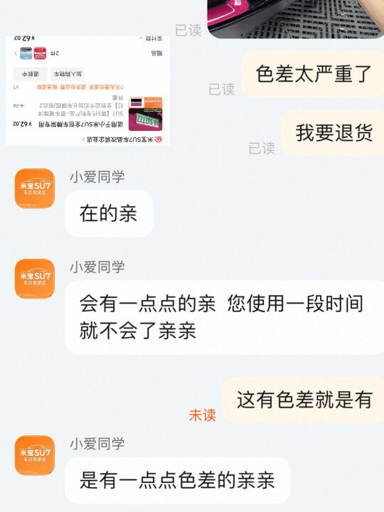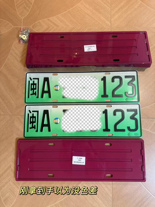 跟风买了洋红的车牌架,以为颜色会一样,结果色差还是很严重,车牌架有点发紫,发了客服,还说会有一点点的,使用一段时间就不会了。大无语,直接退货。