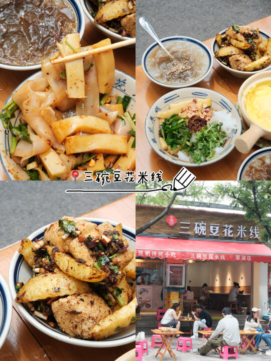 吃:钱局街上的⭐【三碗豆花米线】 是我翠湖行程里的必吃项!主打云南传统特色小吃 他家的豆花米线、鸡蛋米布、木瓜水...本地人都很爱吃~尽管盲点 最近天热 来一碗凉豌豆粉也是相当板扎!还有登华街上的一家日式面包店⭐【喫茶】也很推荐哦~奶油三明治太爱了~