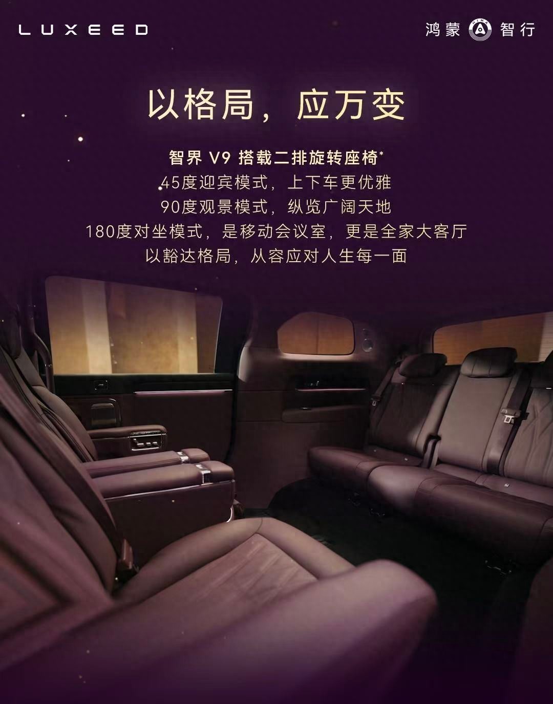 区别于传统MPV“二排独大”的短板,智界V9三排配置不缩水,商务接待时二排零重力模式彰显旗舰格调,家庭长途时三排乘客也能舒展双腿。智界V9以“入座即享陆地头等舱”重新定义50万级MPV舒适标准,4月下旬展车登陆全国门店,邀您沉浸式体验舒适天花板!