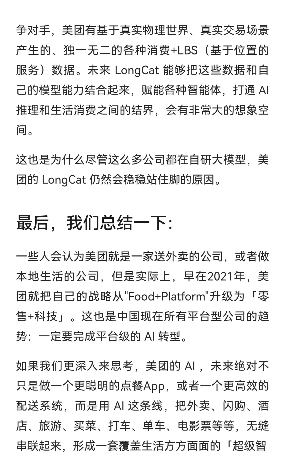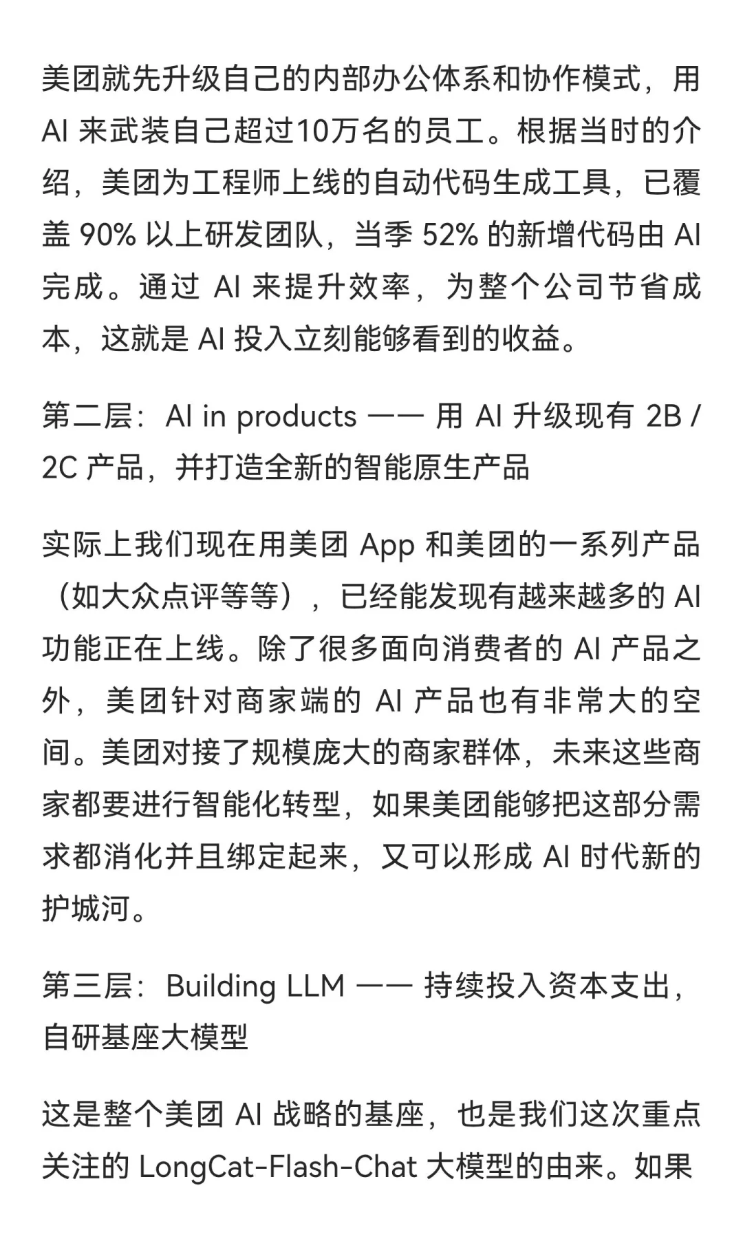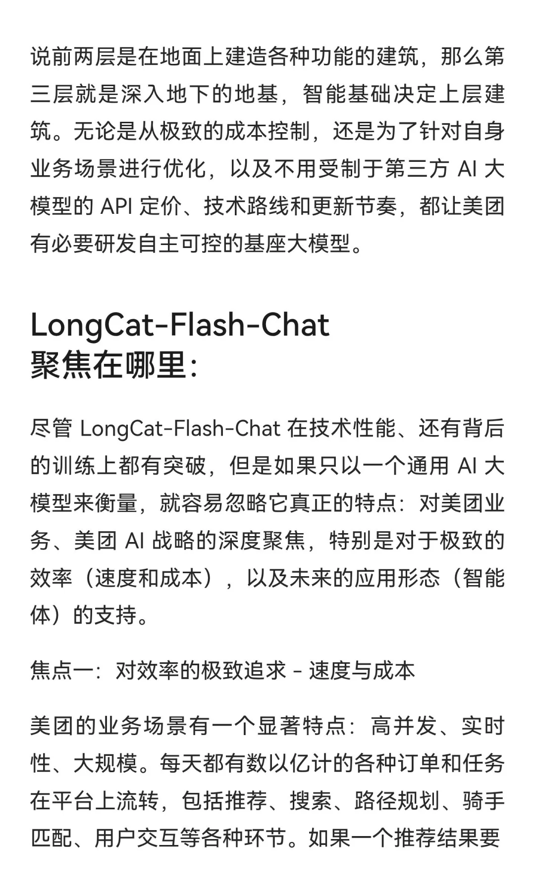 这篇长文(见图片)详细讲解了龙猫“LongCat-Flash-Chat”的背景、优势、亮点,还有背后美团的 AI 战略,以及未来的可能性。